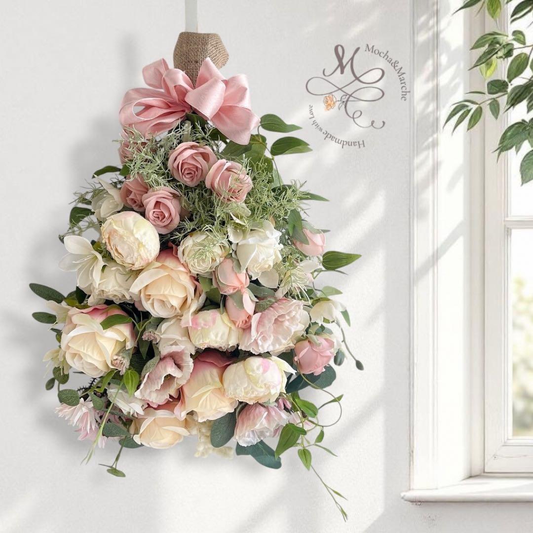 ピンクローズとピオニーのスワッグ|光触媒フラワー・開店祝い・誕生日ギフト アーティフィシャルフラワー