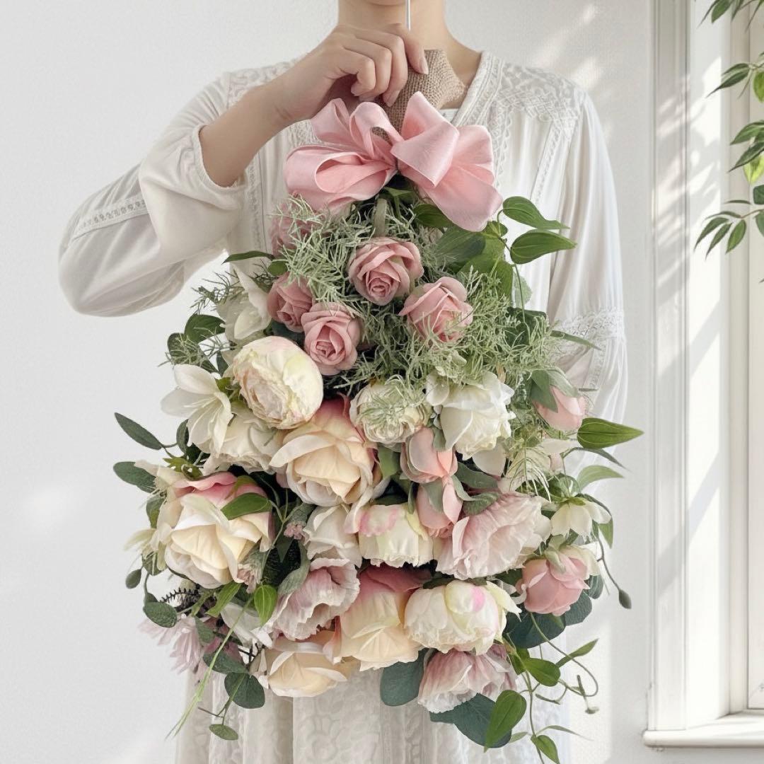 そっと心を撫でるような、優しさと上品さを纏ったピンクローズのペールトーンのスワッグ。