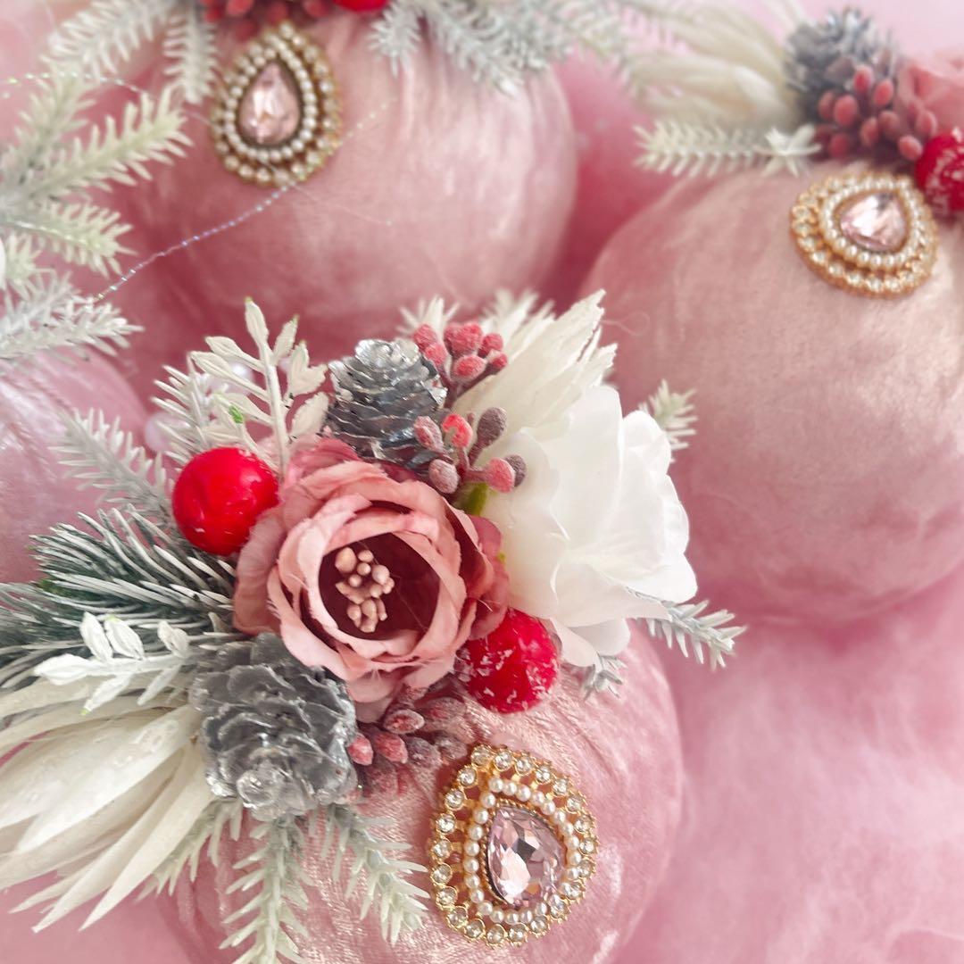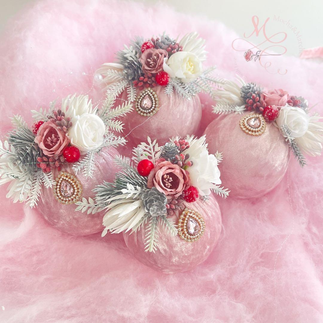 ベルベットピンクの魔法4個セット/ハンドメイド クリスマスオーナメント セット