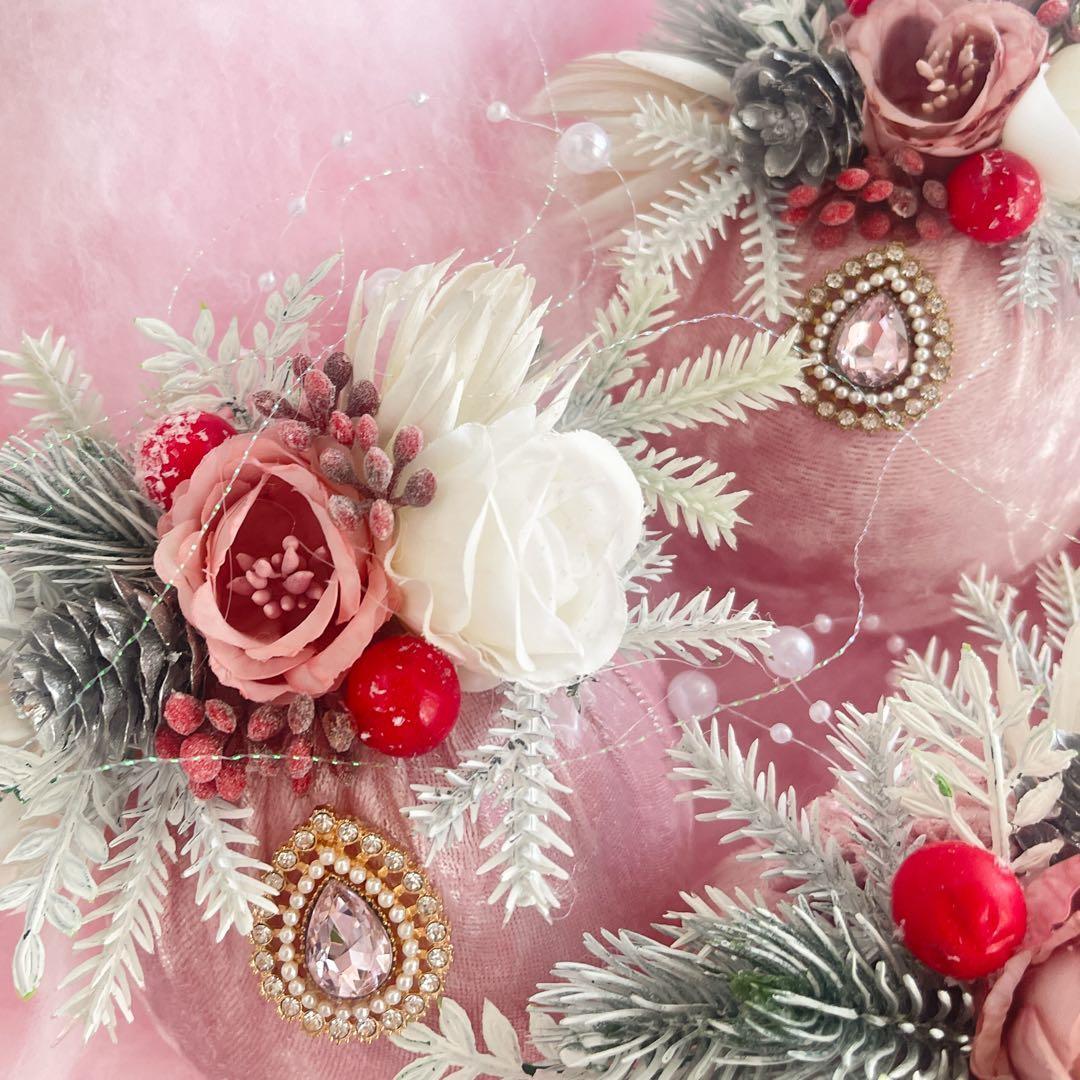 ・素材:アーティフィシャルフラワー、フェイクベリー、ベルベット、パールパーツ など