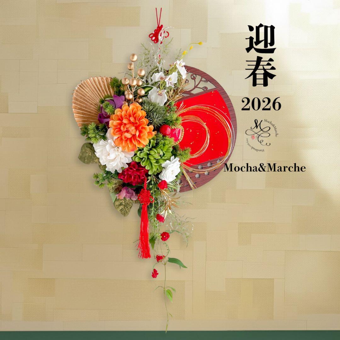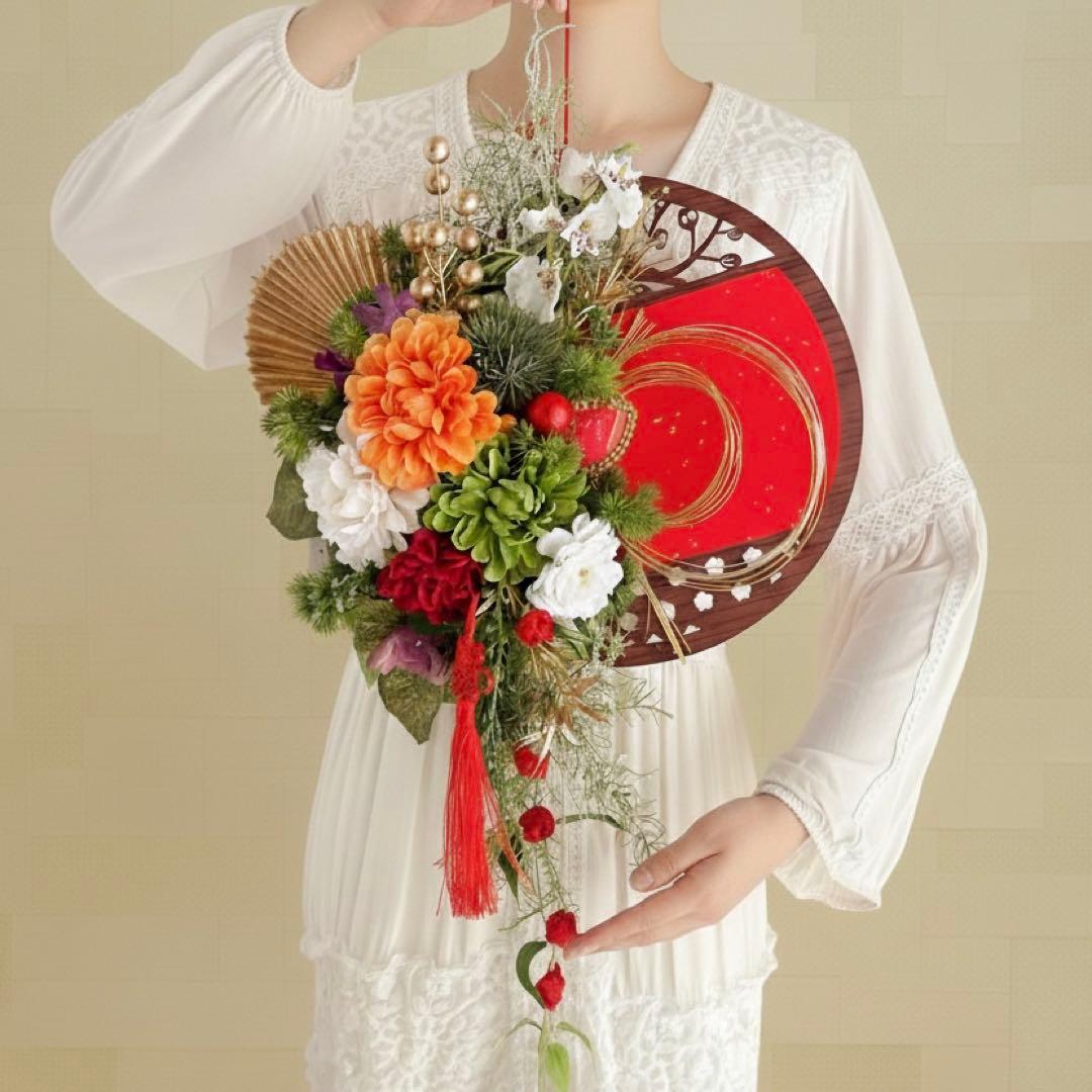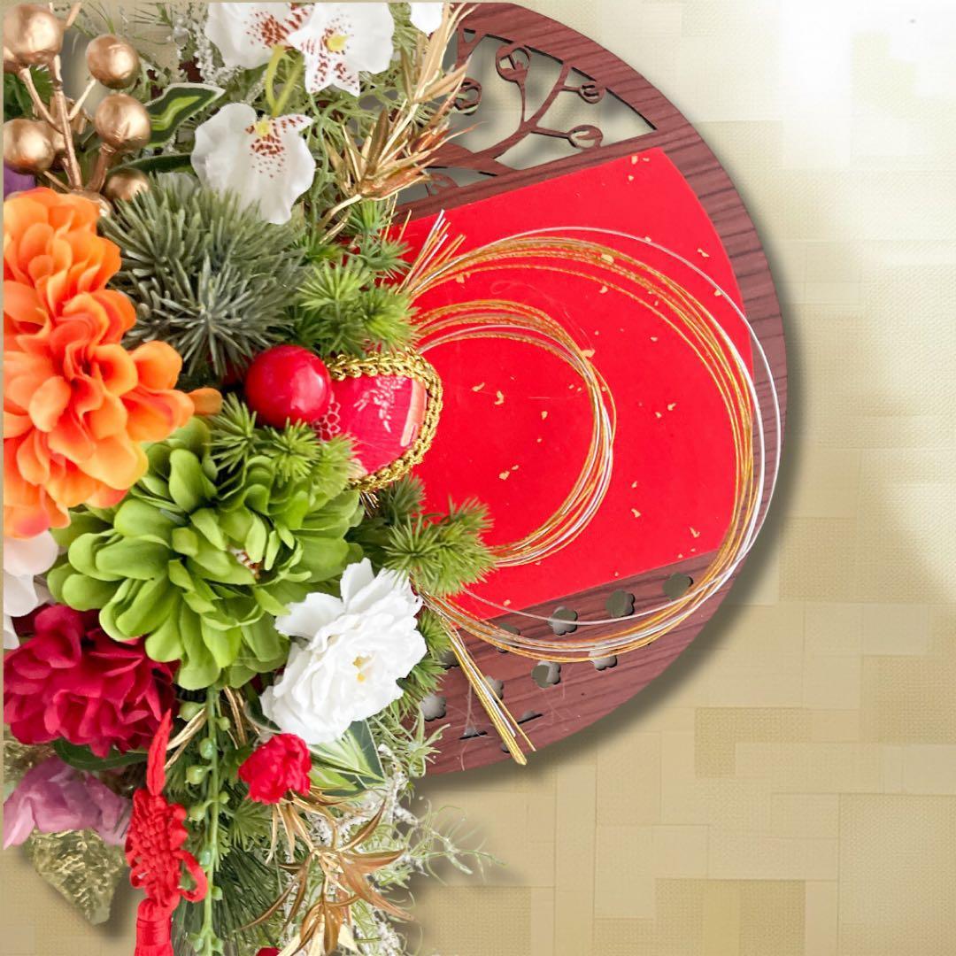 ⑤迎春しめ縄|和モダン新年飾り|玄関にも室内にも飾れるアートフラワーインテリア