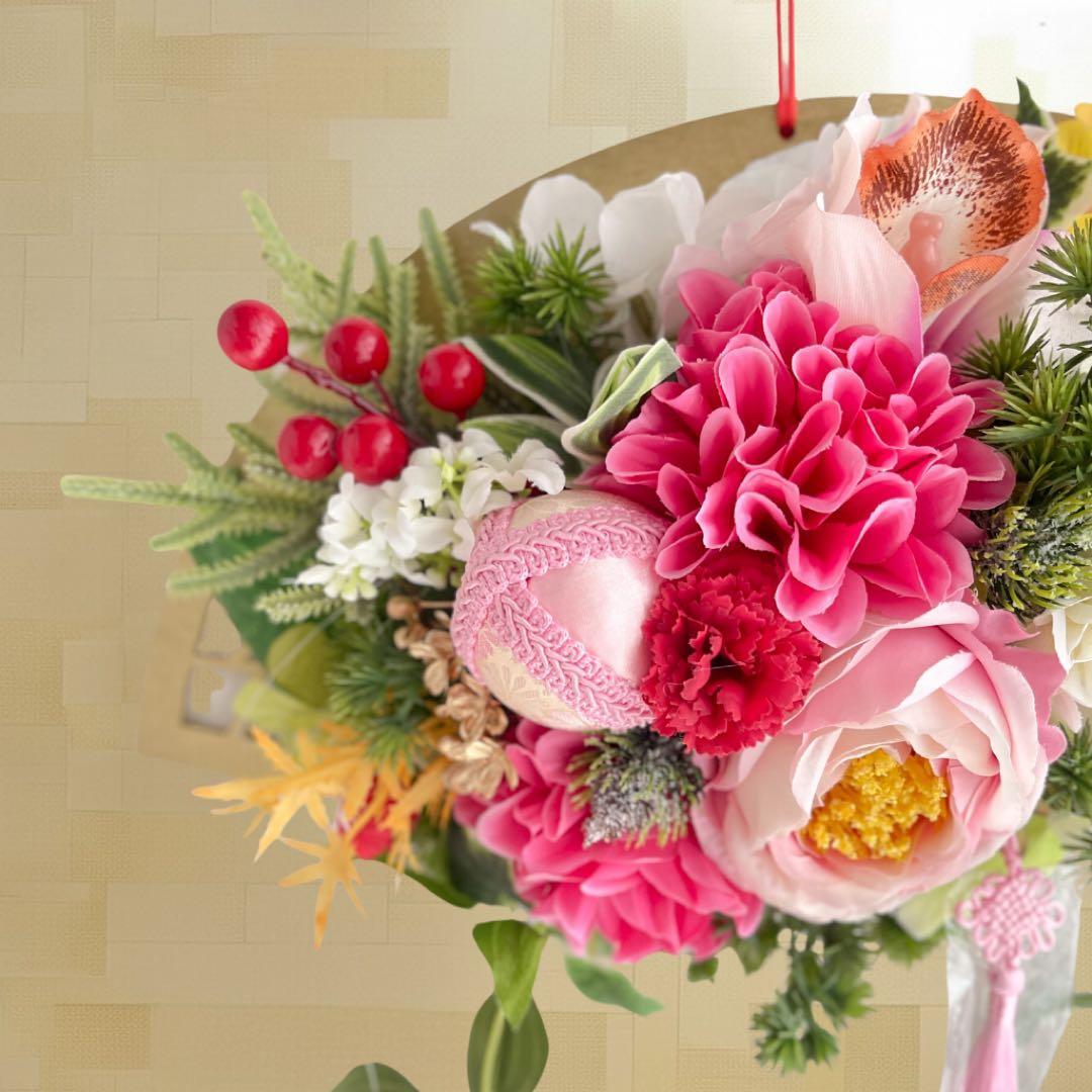 ⑧迎春しめ縄|和モダン新年飾り|玄関にも室内にも飾れるアートフラワーインテリア アーティフィシャルフラワー