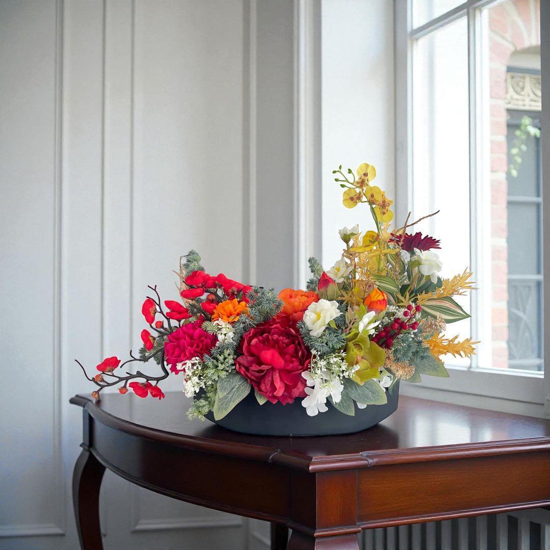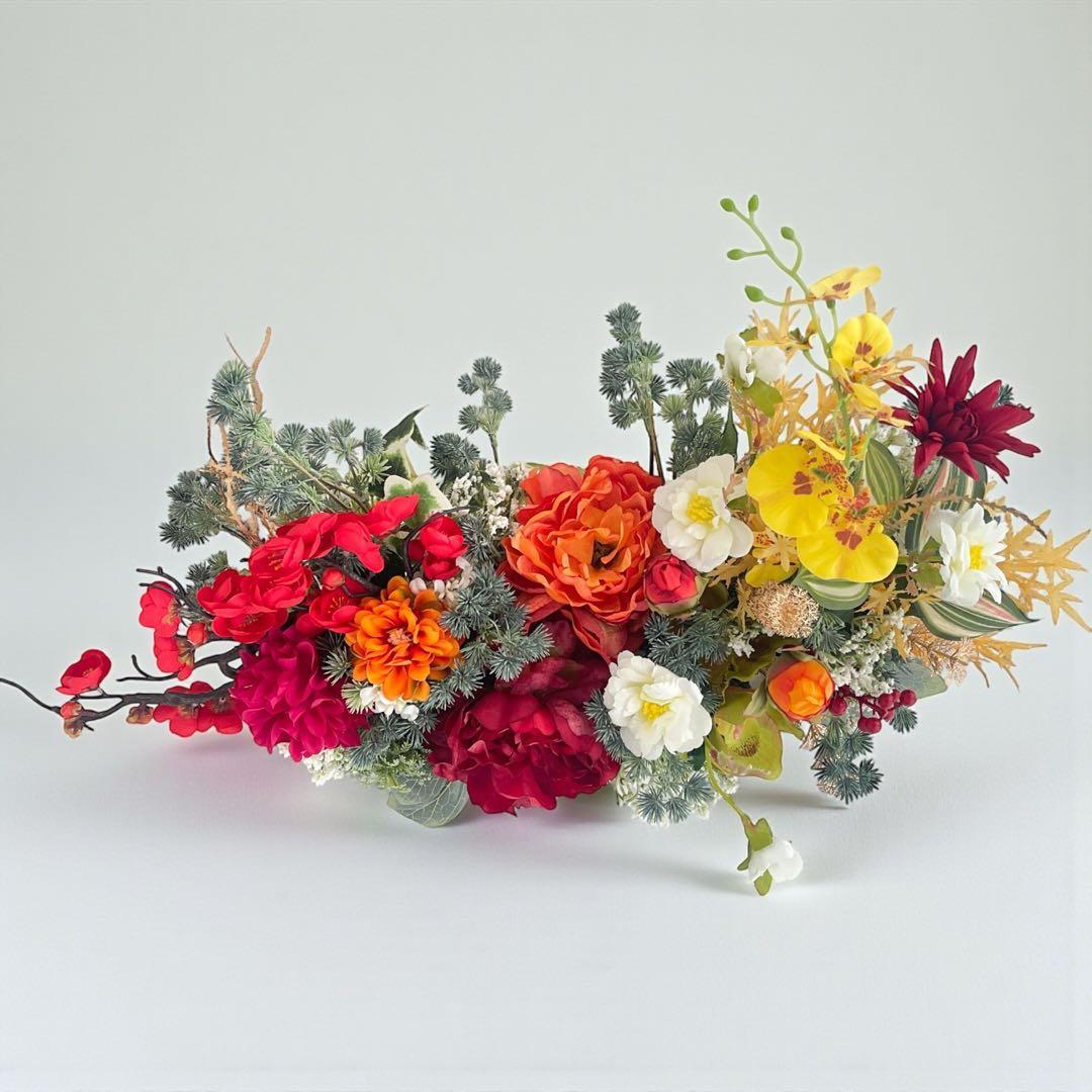 迎春アレンジメント 特大|新春の華やぎを飾る和モダンフラワー|正月飾り 造花 あーてぃふぃしゃるフラワー