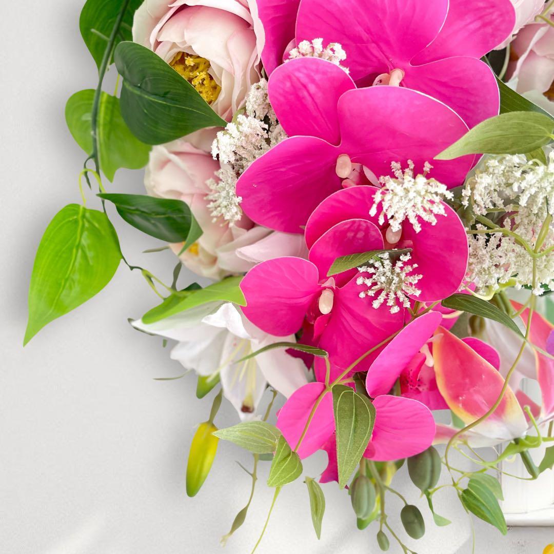 開店祝い・退職祝い・特別な贈り物に ─ 華やかロングスワッグアレンジメント アーティフィシャルフラワー