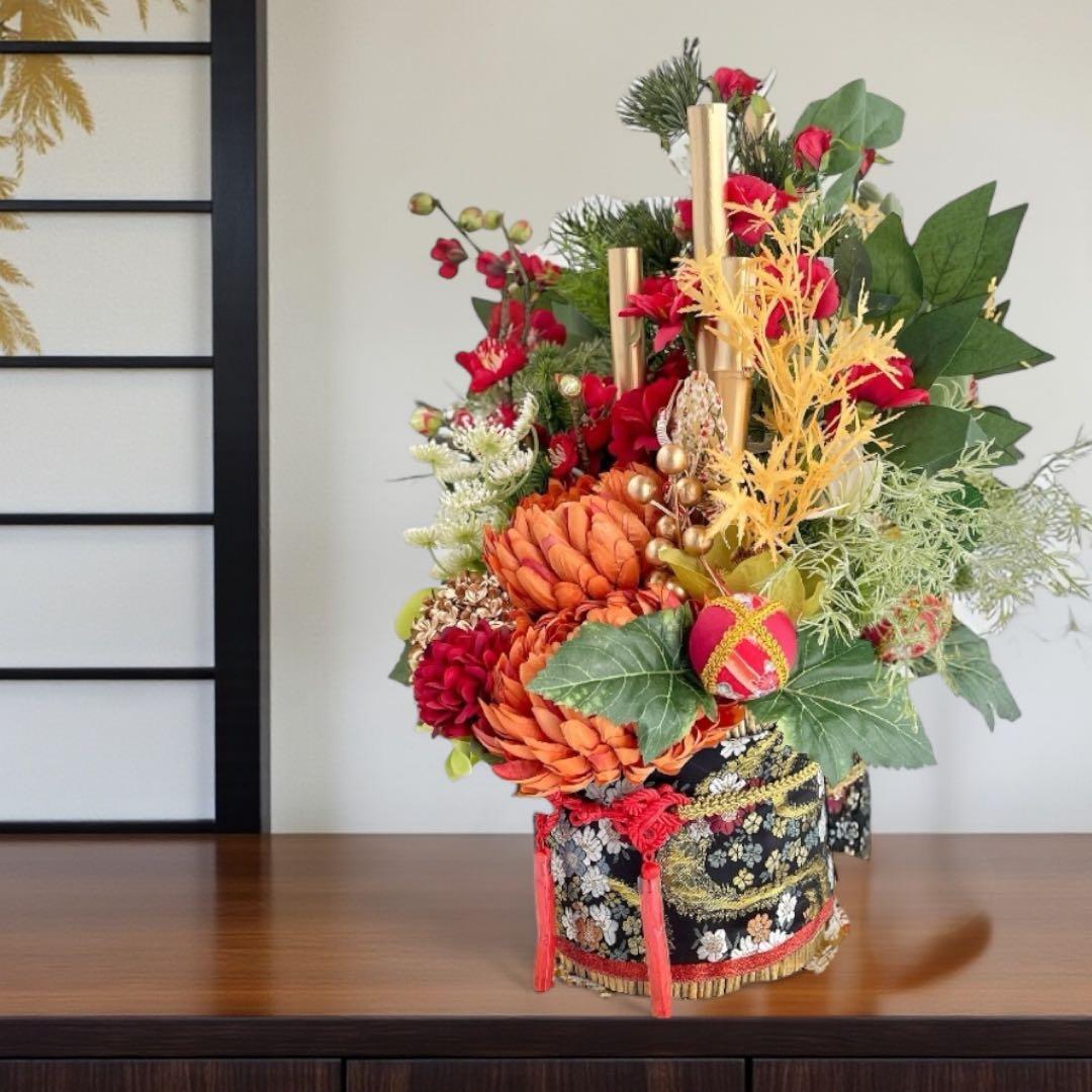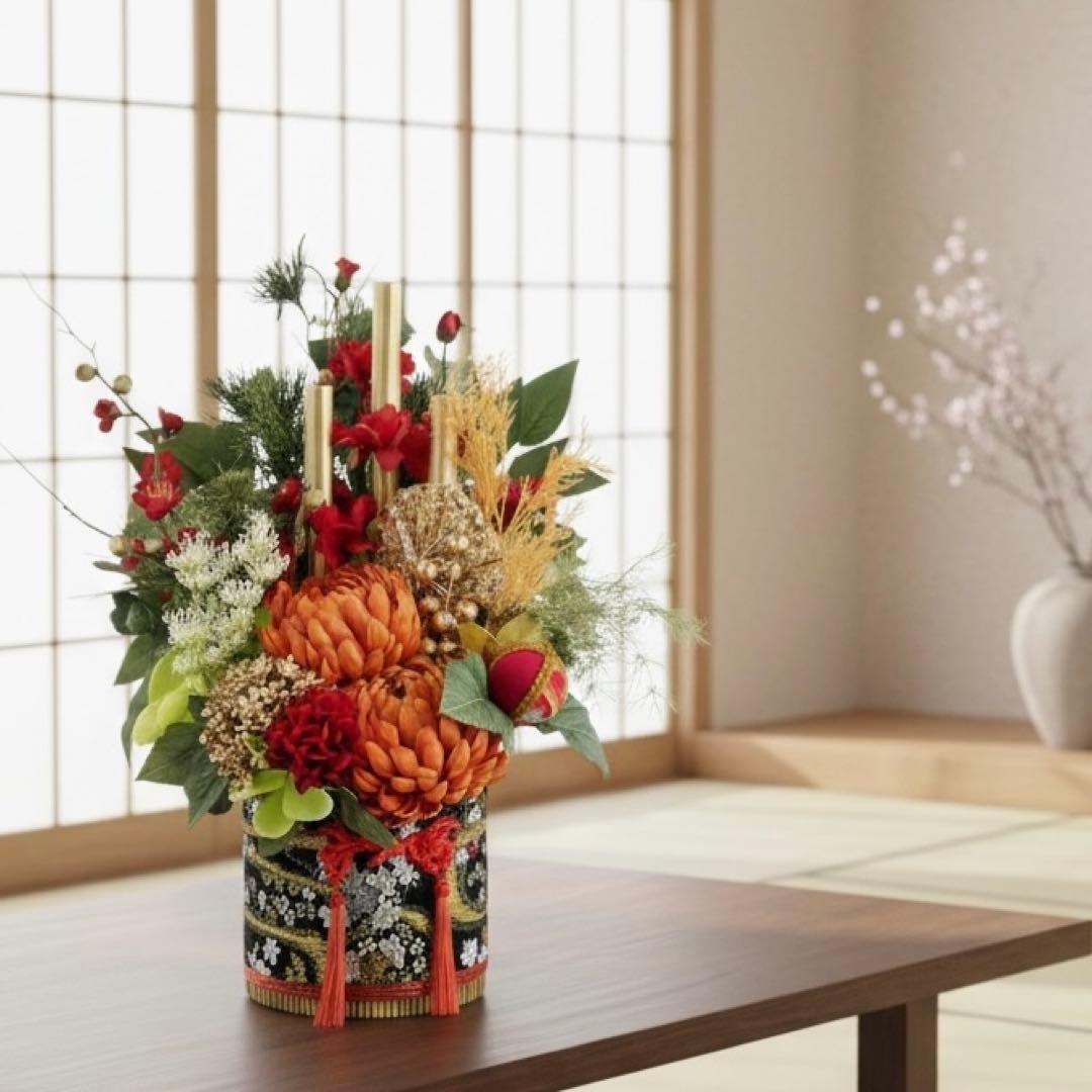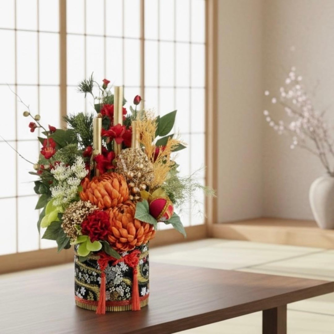 和モダン門松 M|可憐な花々と竹が奏でる、モカアンドマルシェの迎春アレンジ アーティフィシャルフラワー