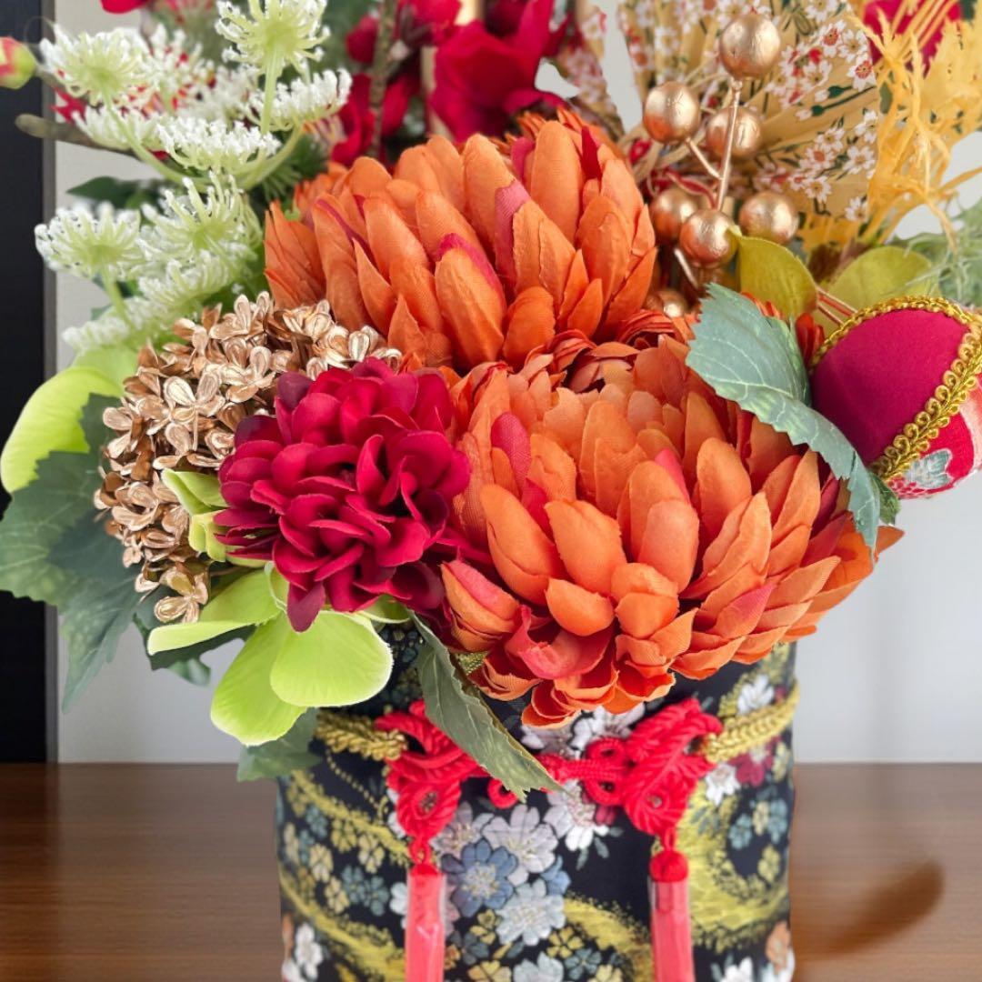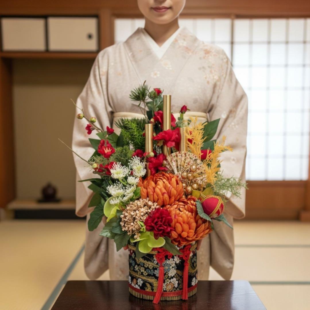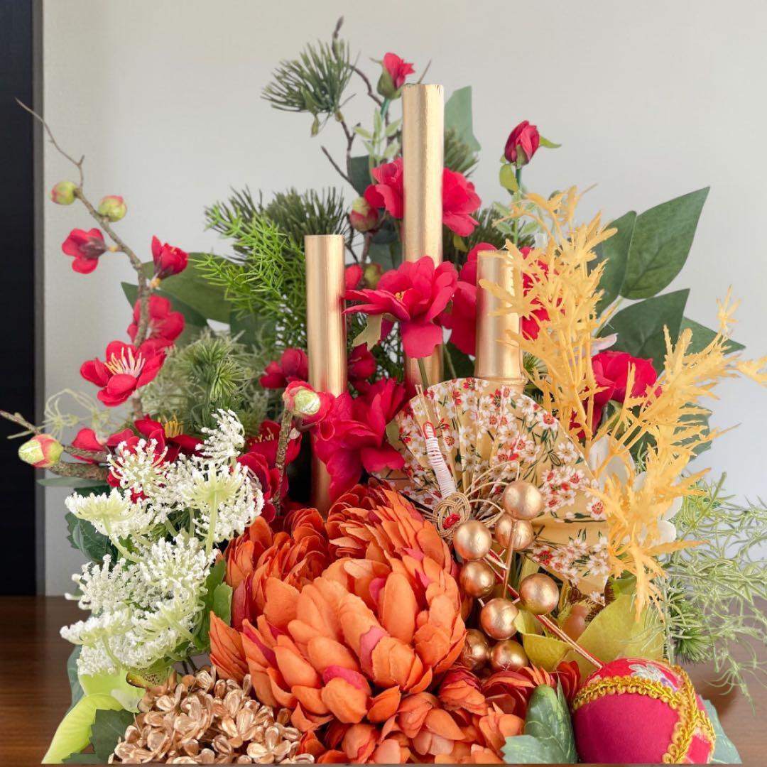 和モダン門松 M|可憐な花々と竹が奏でる、モカアンドマルシェの迎春アレンジ アーティフィシャルフラワー
