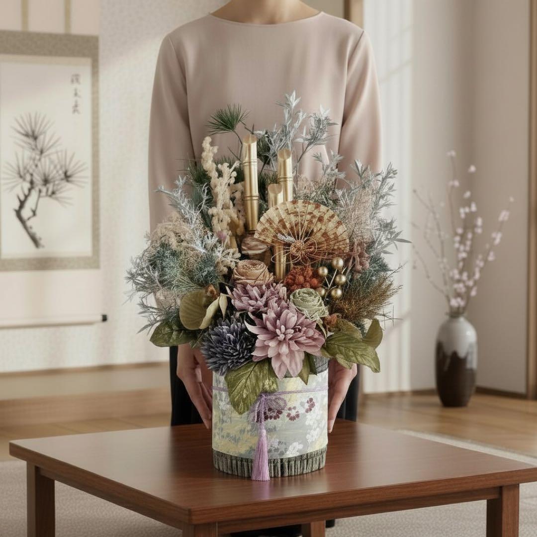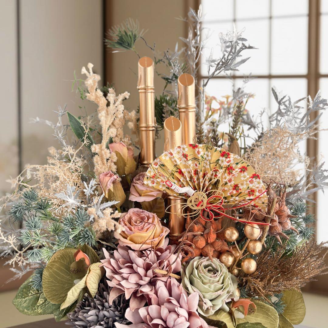 和モダン門松 M|ドライスタイル門松 可憐な花々と竹が奏でる、迎春アレンジ アーティフィシャルフラワー