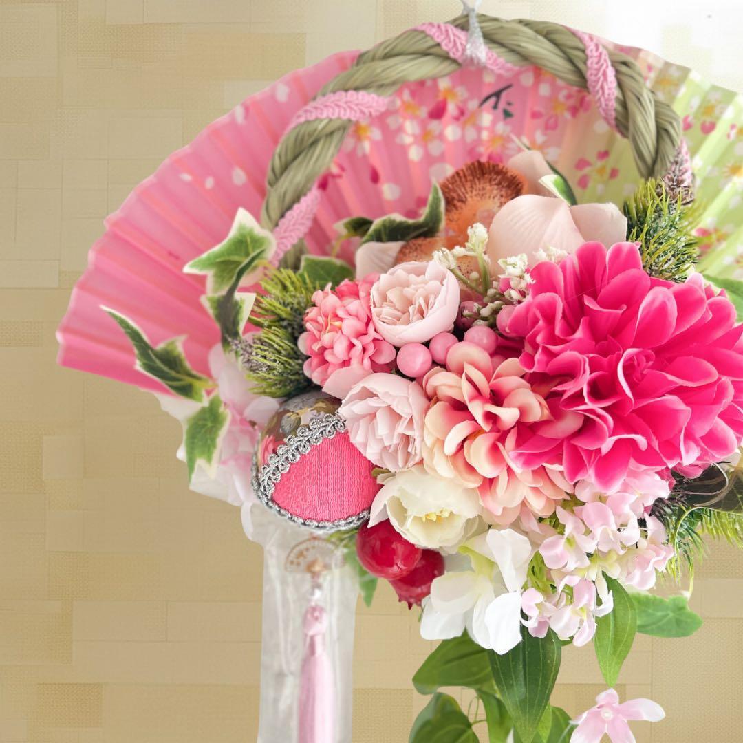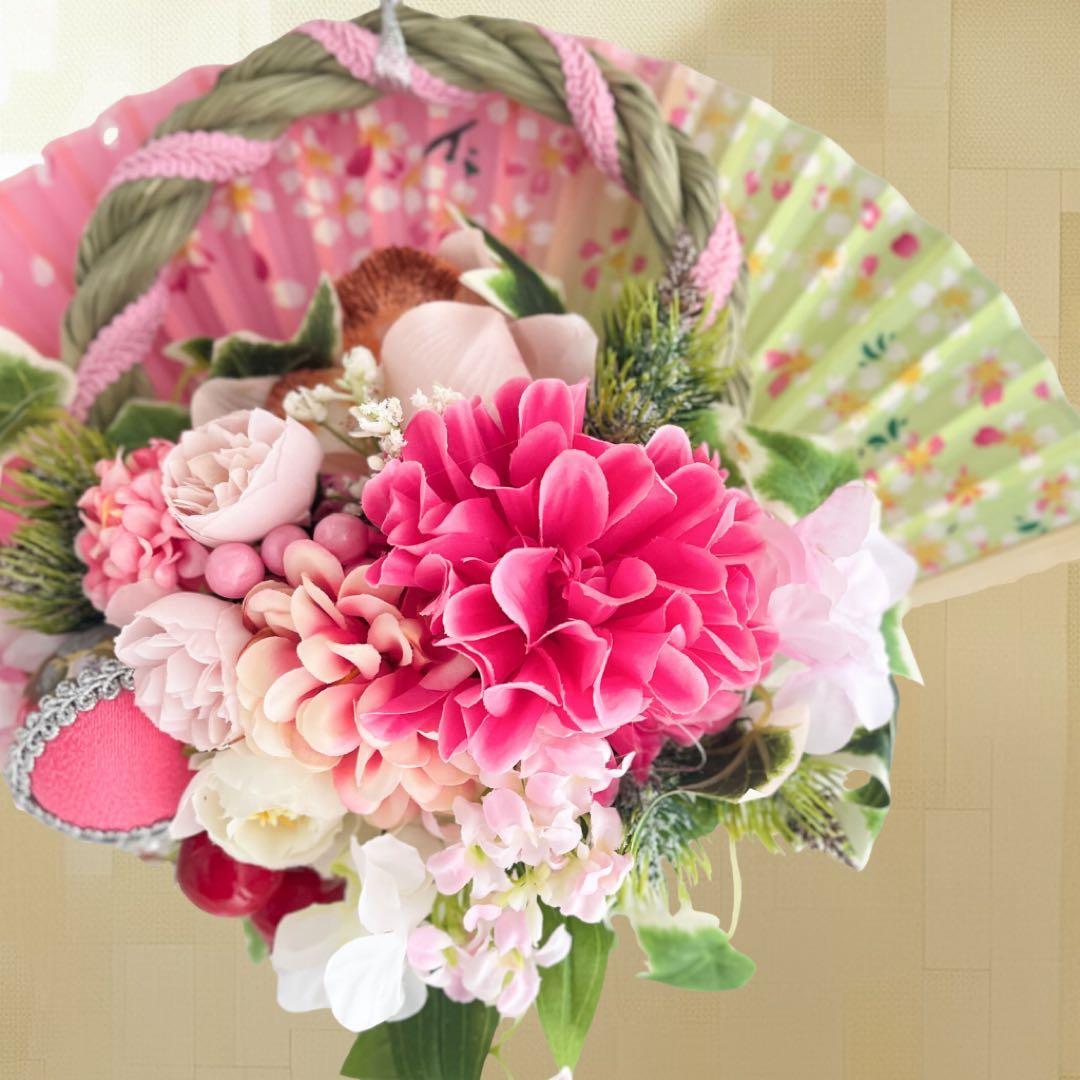 ㉖ 扇の華 しめ縄 アレンジメント〈タッセル付き〉しめ縄リース しめ飾り 正月飾り 造花