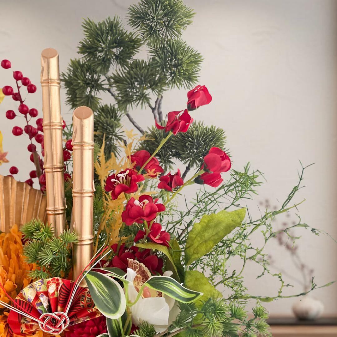 枯れないアーティフィシャルフラワーだから、毎年の新年飾りとして繰り返し使用でき、コスパも優秀。