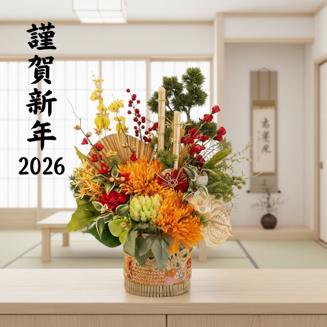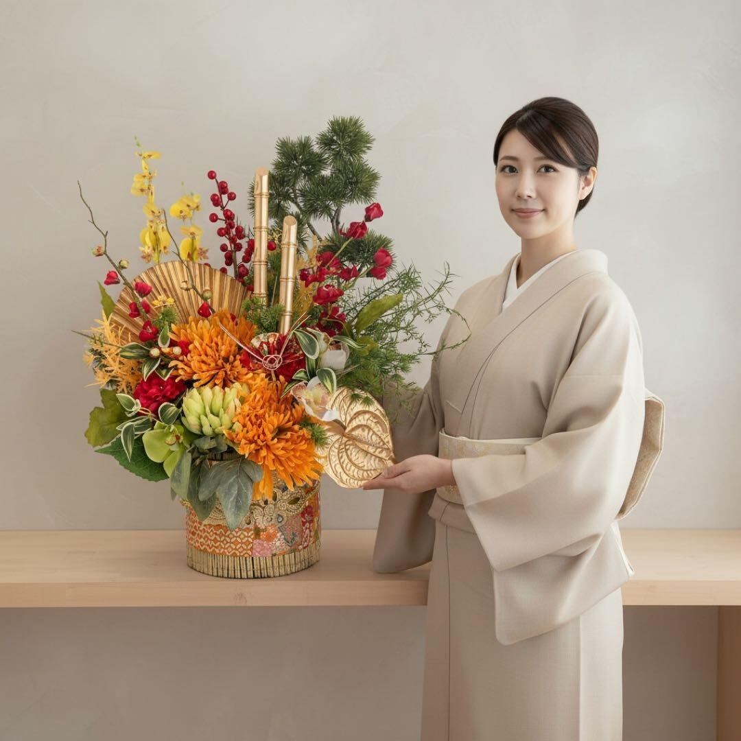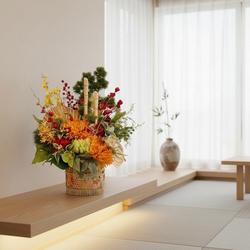 玄関ホールやサロン、店舗のレジ横、マンションのエントランスなど、ひと目で「特別なお正月」を演出したい場所にぴったりです。