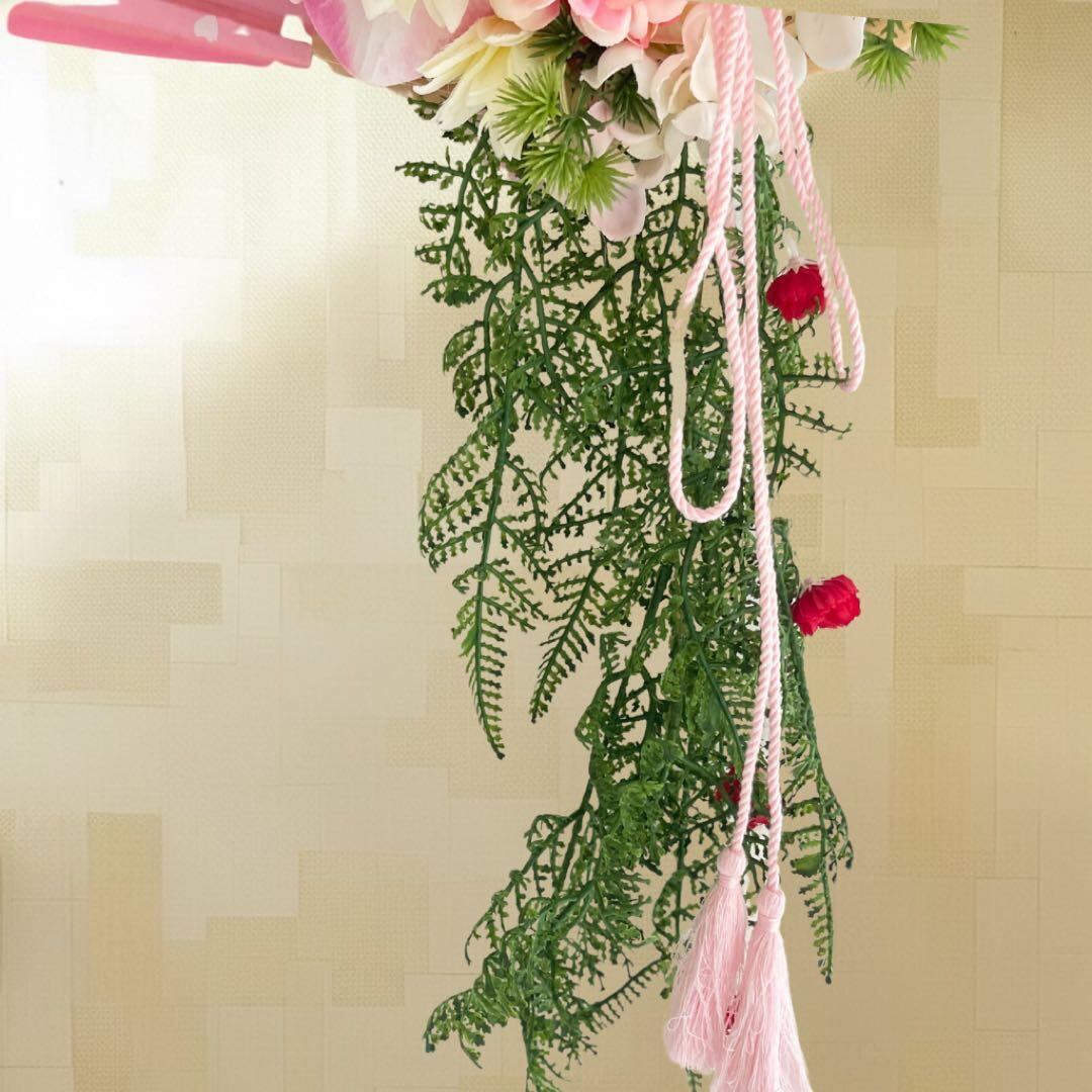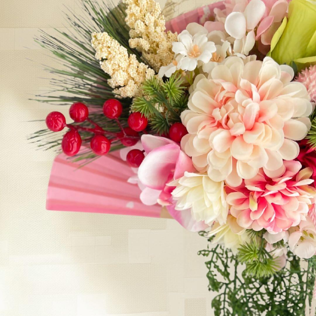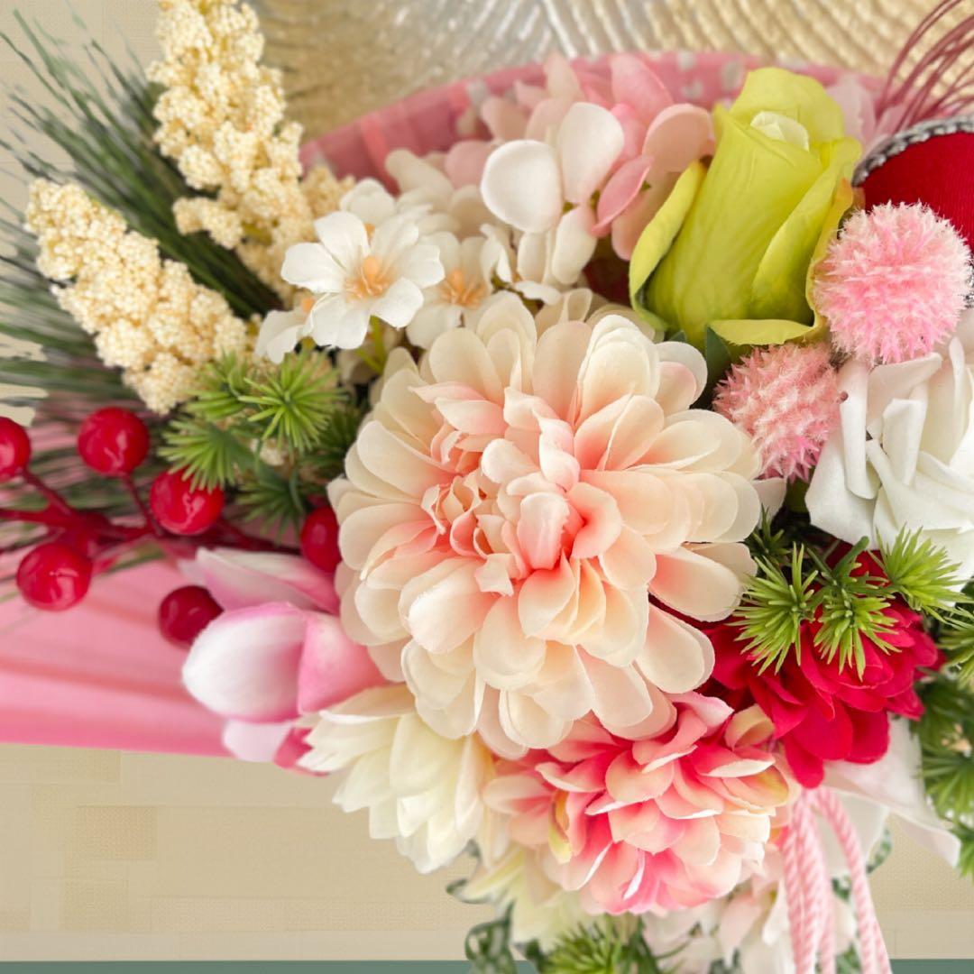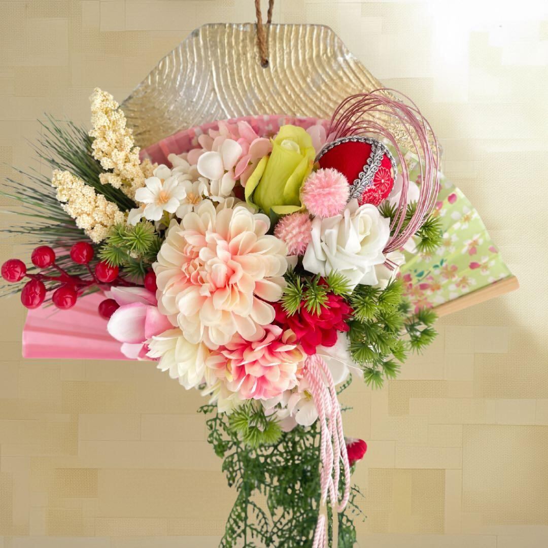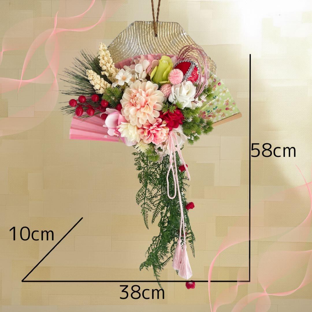 ㉛ 扇が華ひらく・迎春しめ縄リース(淡桃)|上品に咲く可憐なお正月飾り 造花
