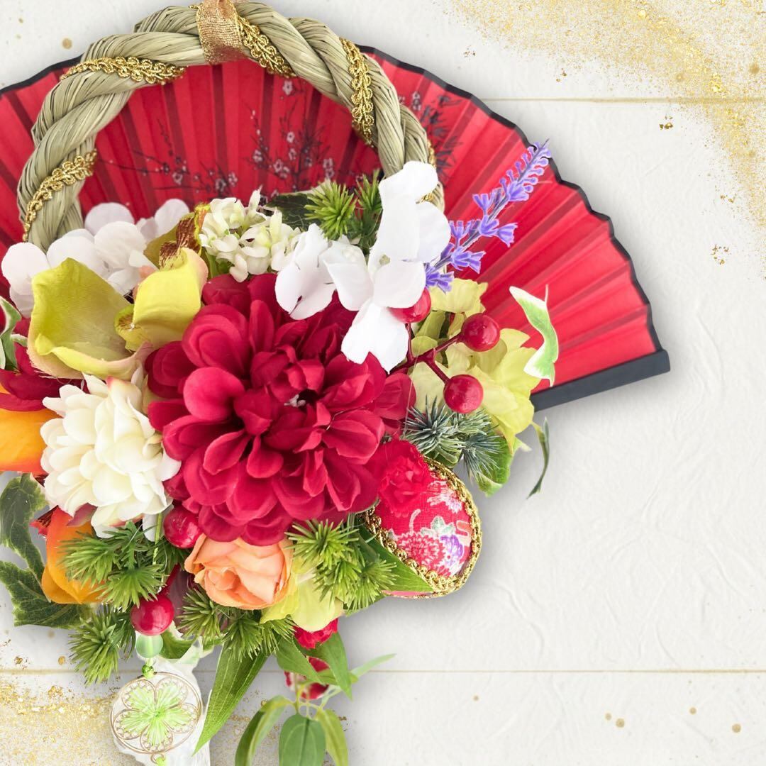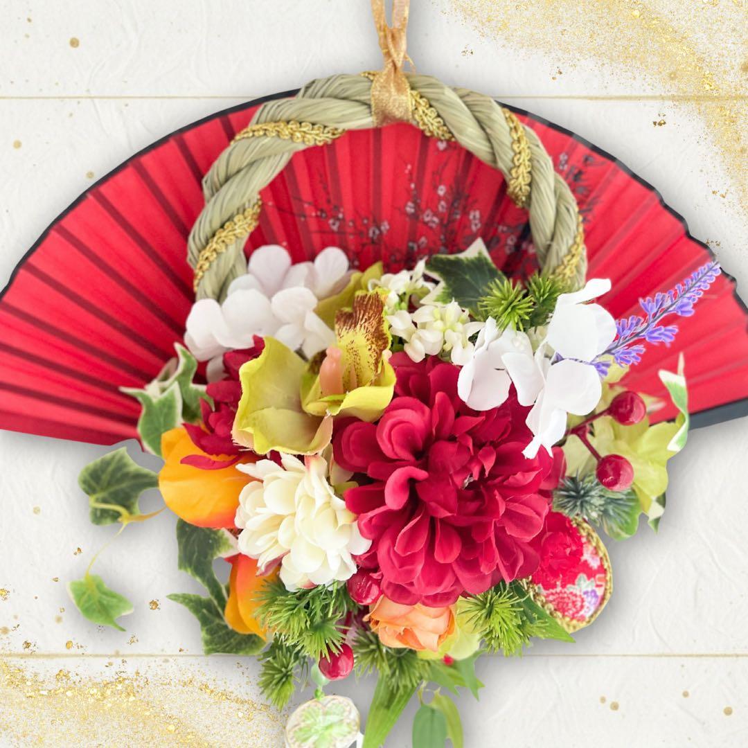 ㉘ 扇の華 しめ縄 アレンジメント〈タッセル付〉しめ縄リース しめ飾り 正月飾り