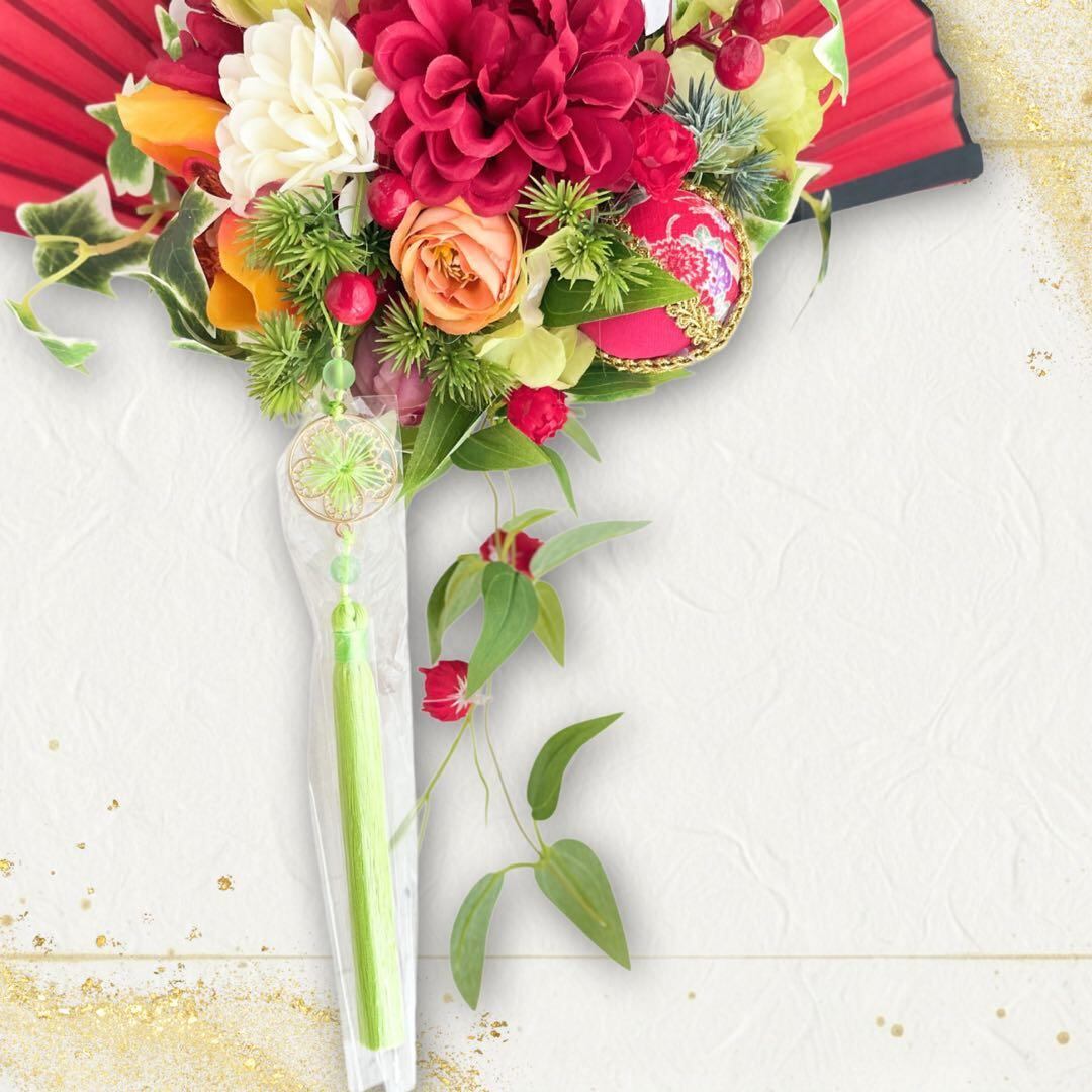 しめ縄と合わせることで、幸せが花開くよう願いを込めた、世界にひとつだけの一点ものです。