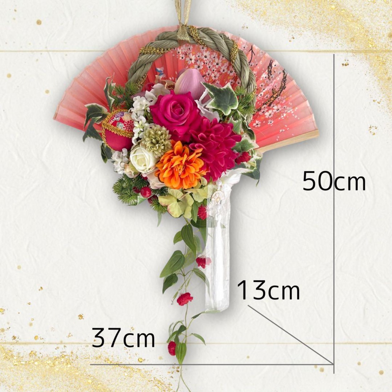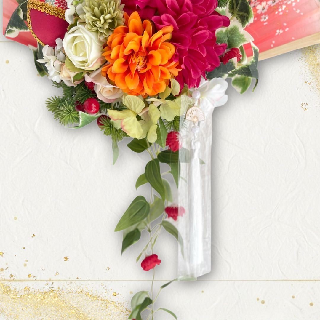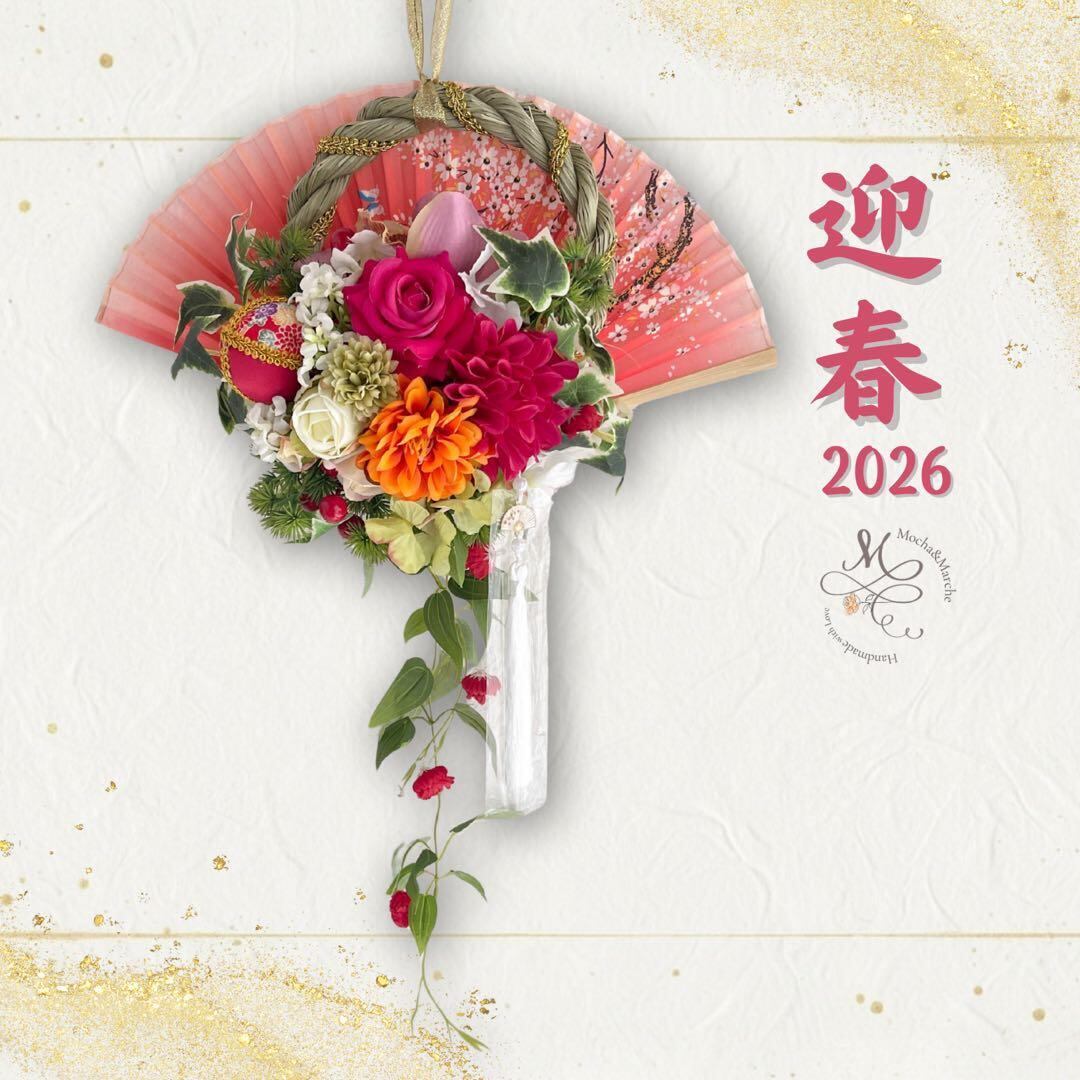 しめ縄と合わせることで、幸せが花開くよう願いを込めた、世界にひとつだけの一点ものです。