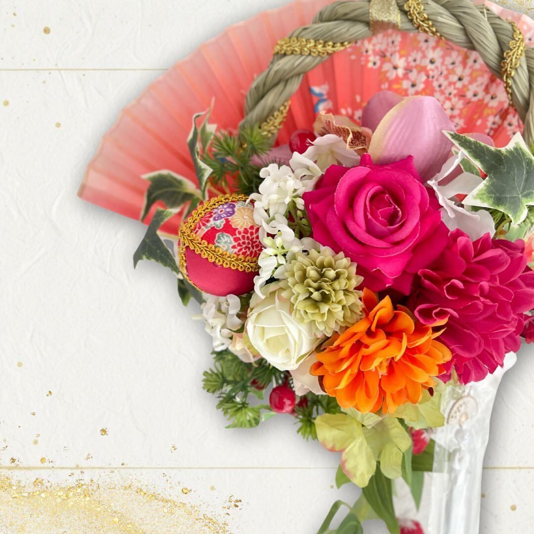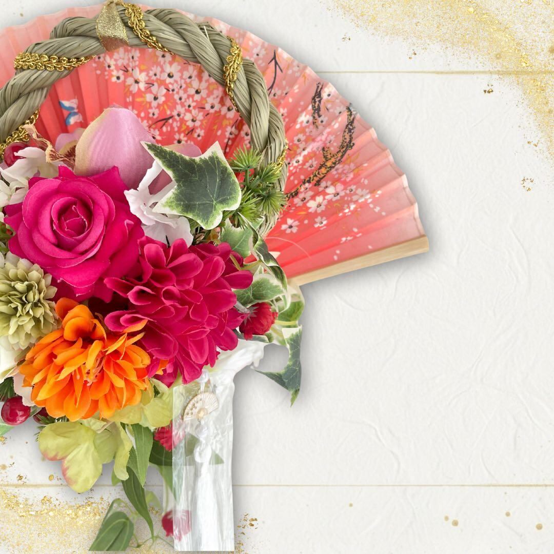 ㉚扇の華 しめ縄 アレンジメント〈タッセル付き〉しめ縄リース しめ飾り 正月飾り