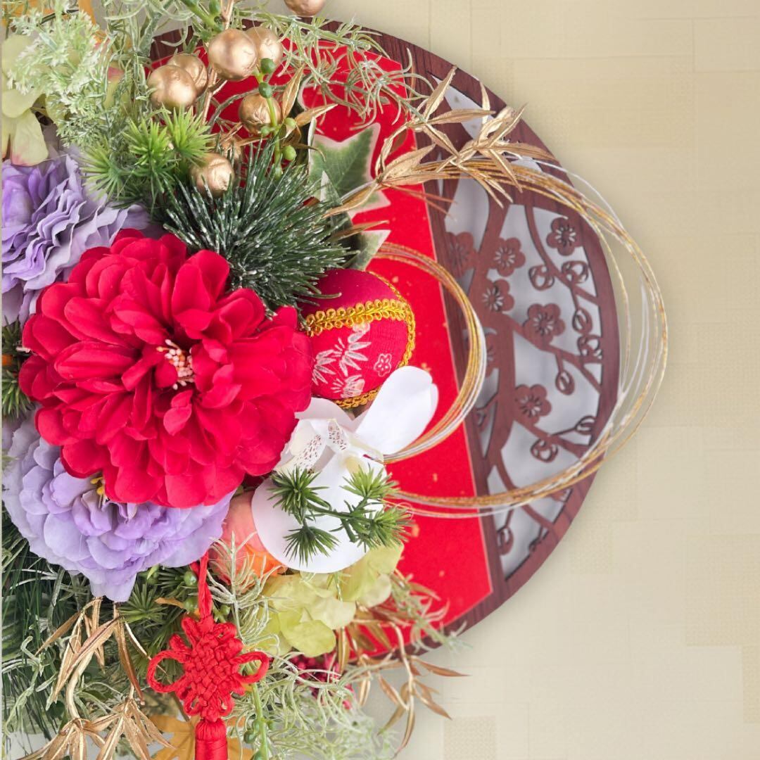 ㊱雅赤プレミアムしめ縄リース|和モダン迎春飾り 造花 しめ縄 正月飾り 迎春飾り