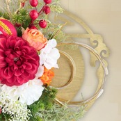 ゴールドベースの土台の凛とした佇まいに、アーティフィシャルフラワーを繊細に重ね、和の上品さと優雅なボリュームを両立。