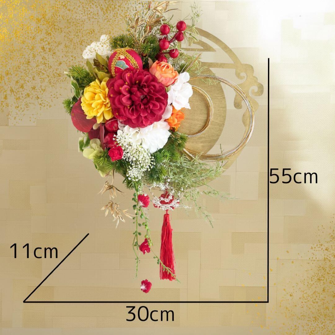 ㉗ 迎春しめ縄|和モダン新年飾り|玄関にも室内にも飾れるアートフラワーインテリア