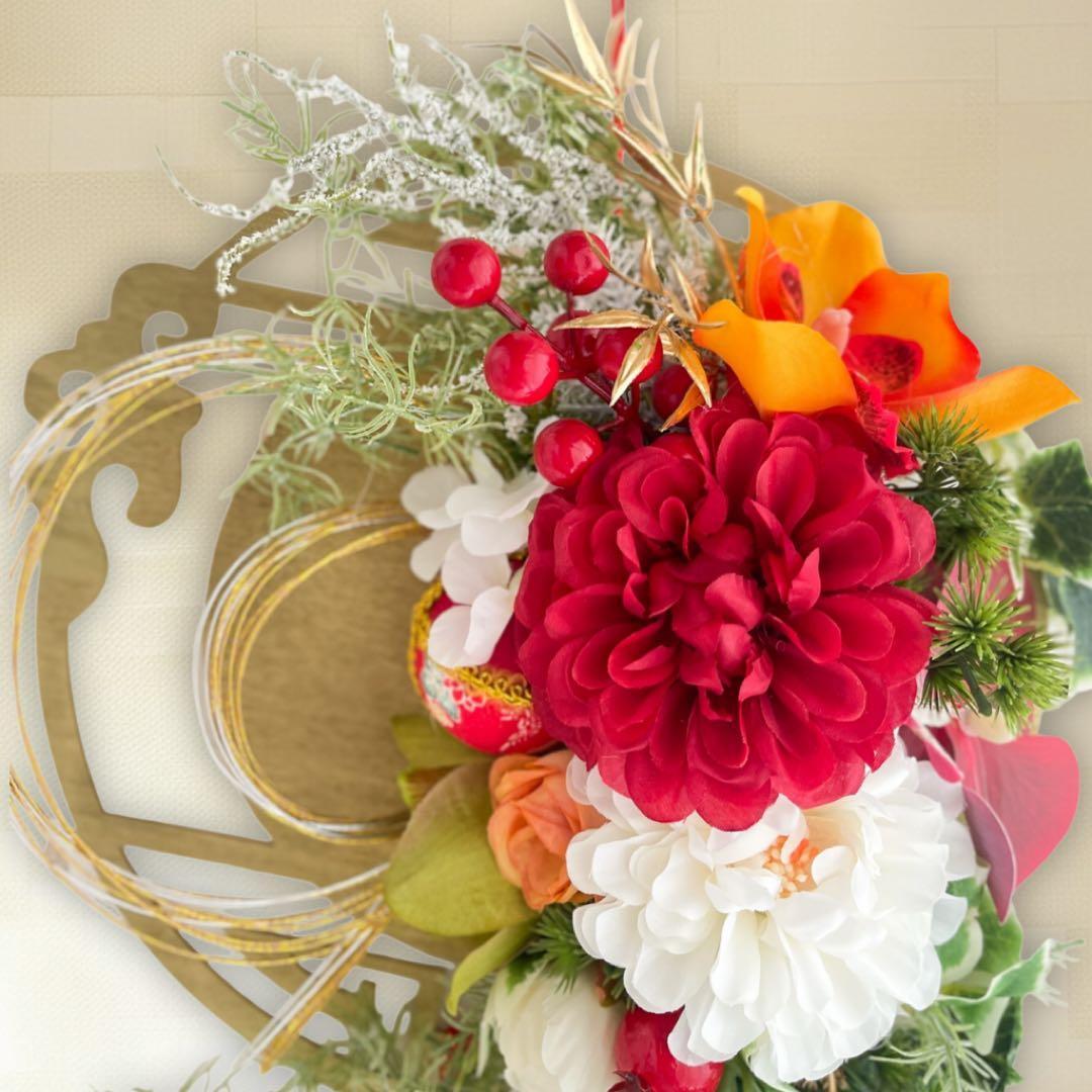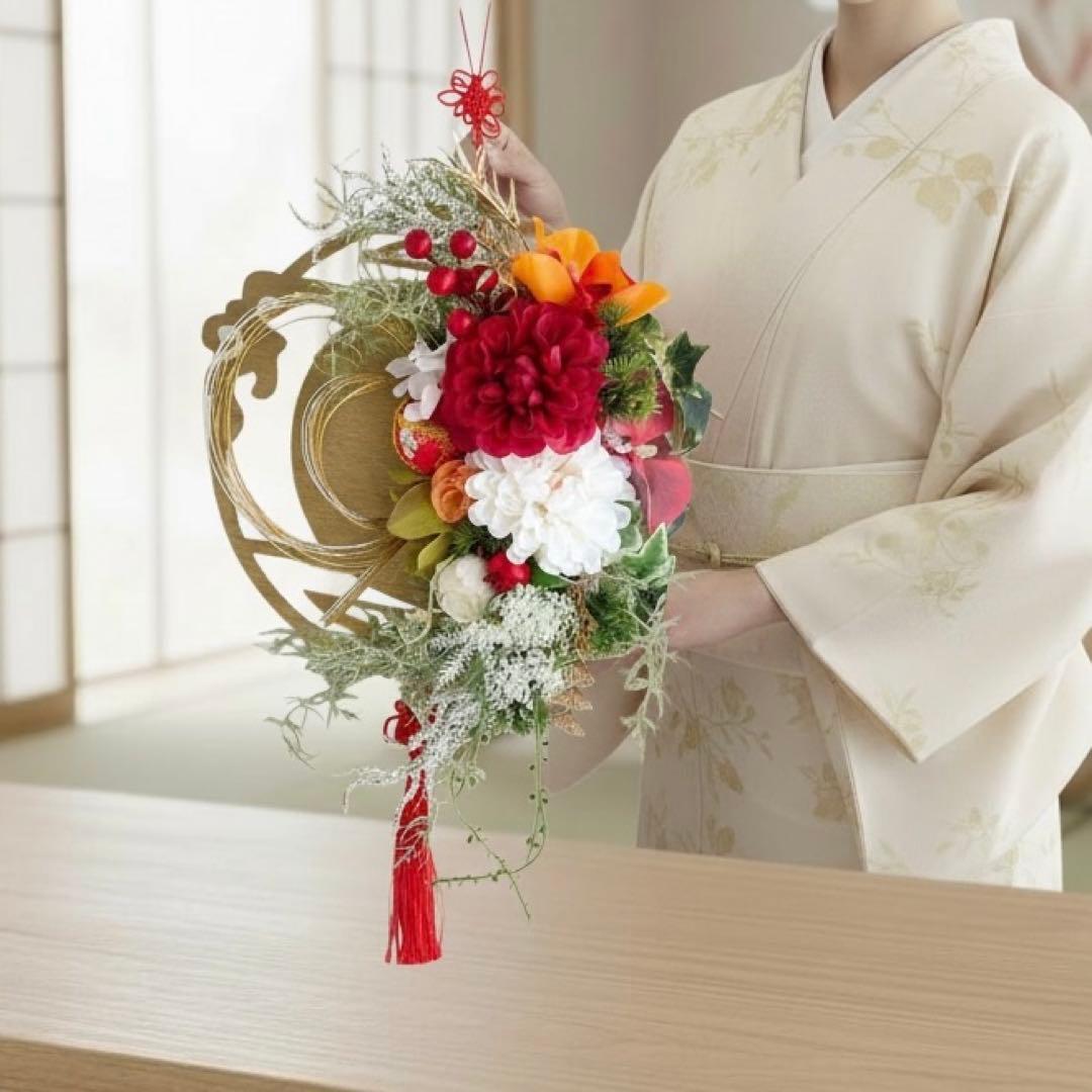 Designed as timeless wall decor, this arrangement blends traditional Japanese aesthetics with a modern floral composition.