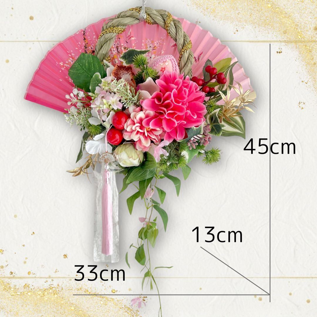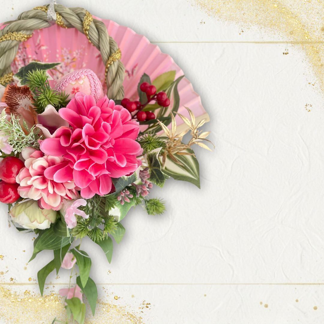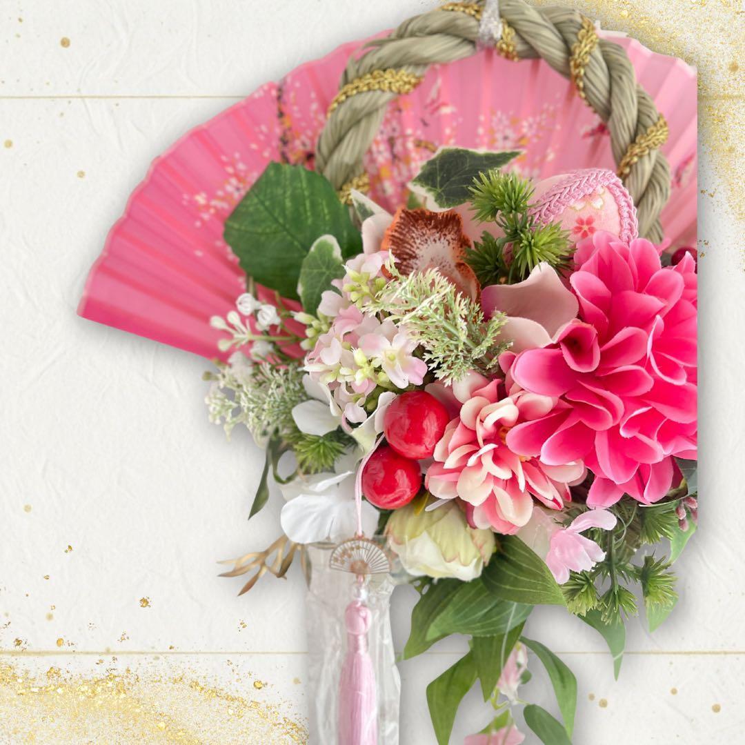 ㉙ 扇の華 しめ縄 アレンジメントしめ縄リース しめ飾り 正月飾り 造花