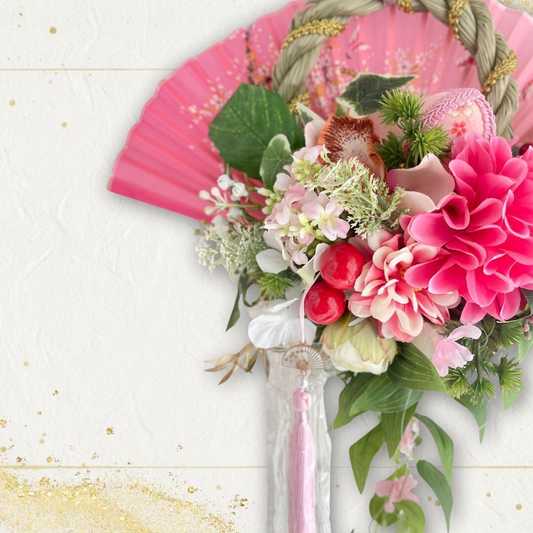 しめ縄と合わせることで、幸せが花開くよう願いを込めた、世界にひとつだけの一点ものです。