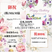 ふんわりと広がる扇のシルエットに、お花やグリーンをたっぷり束ねた、モカアンドマルシェならではの可愛らしさが詰まった人気の作品です。