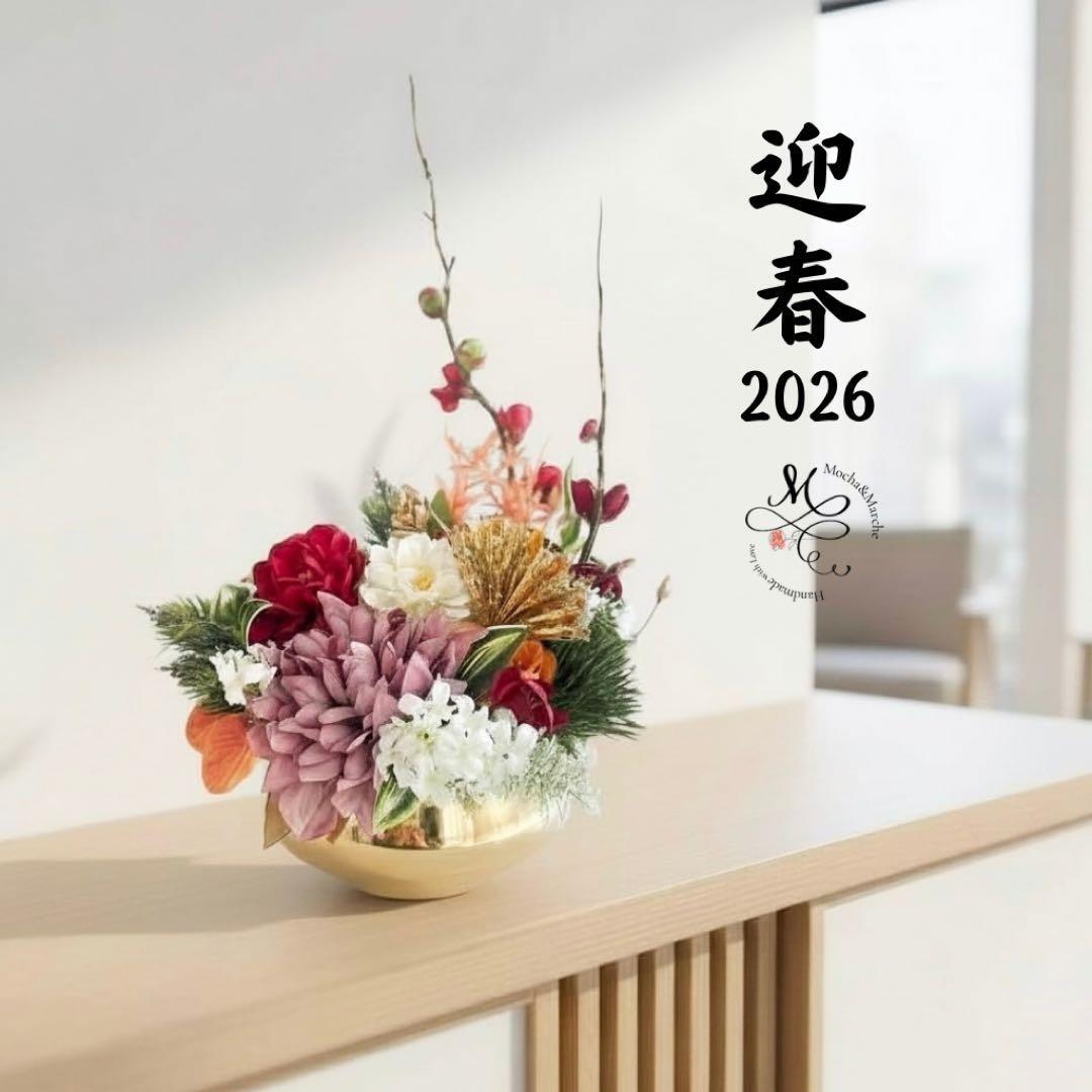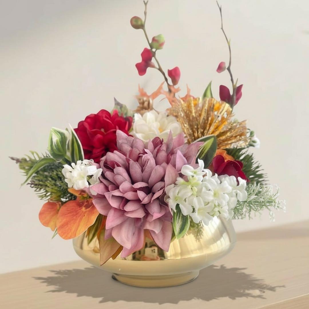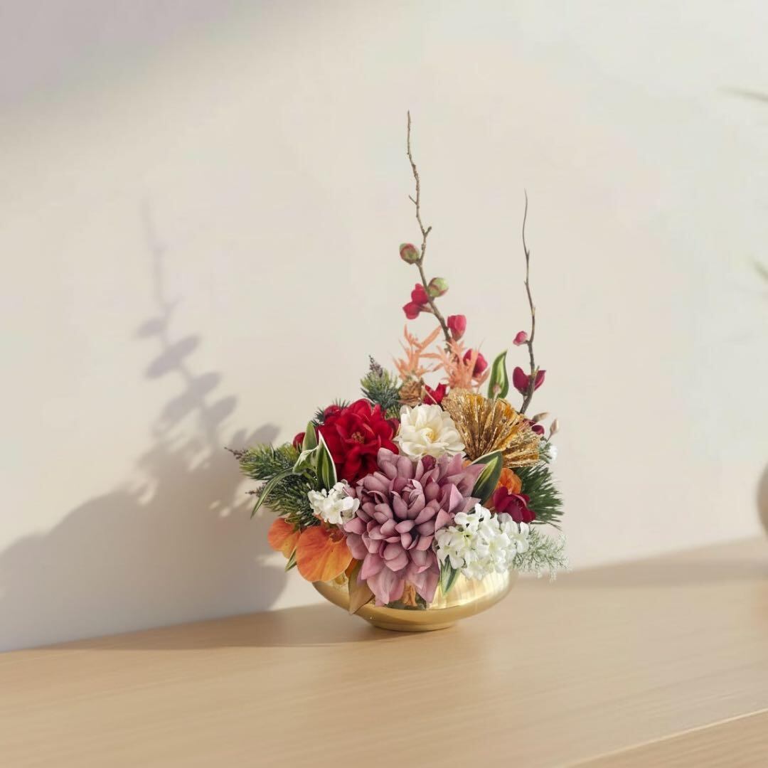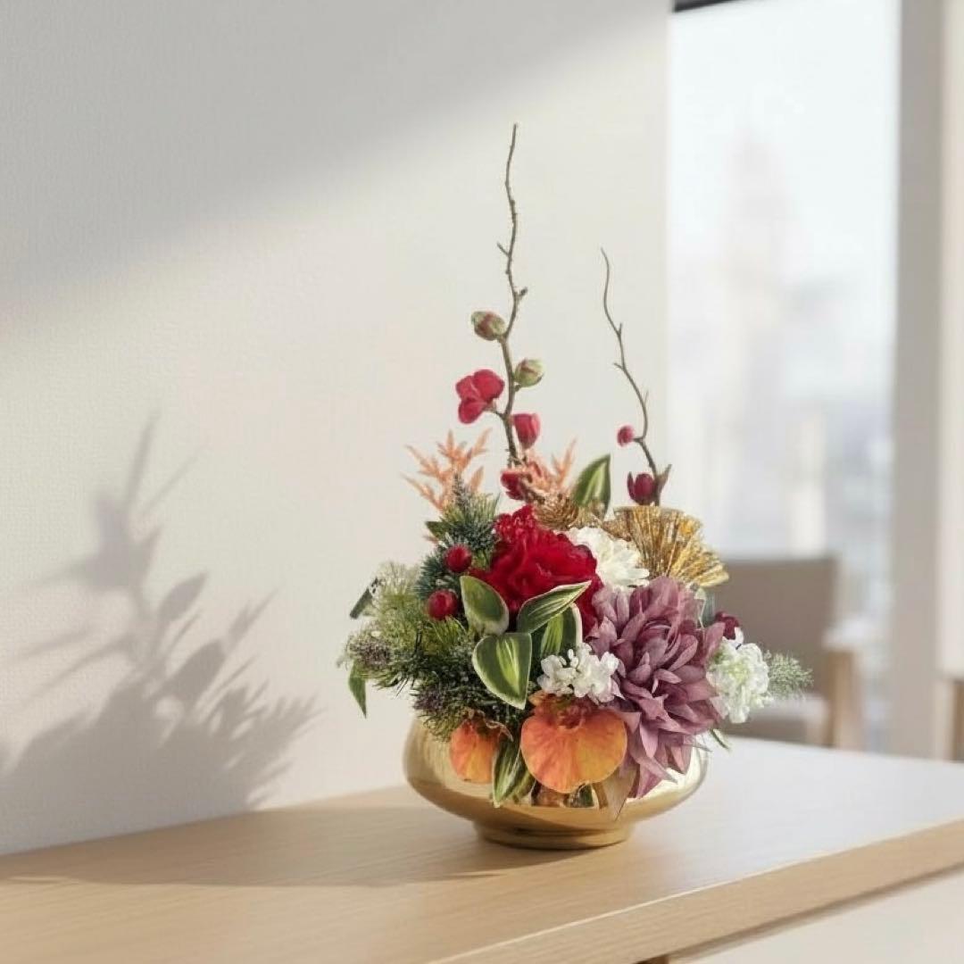 金の彩りがふわりと広がる、上質な迎春アレンジメント。
