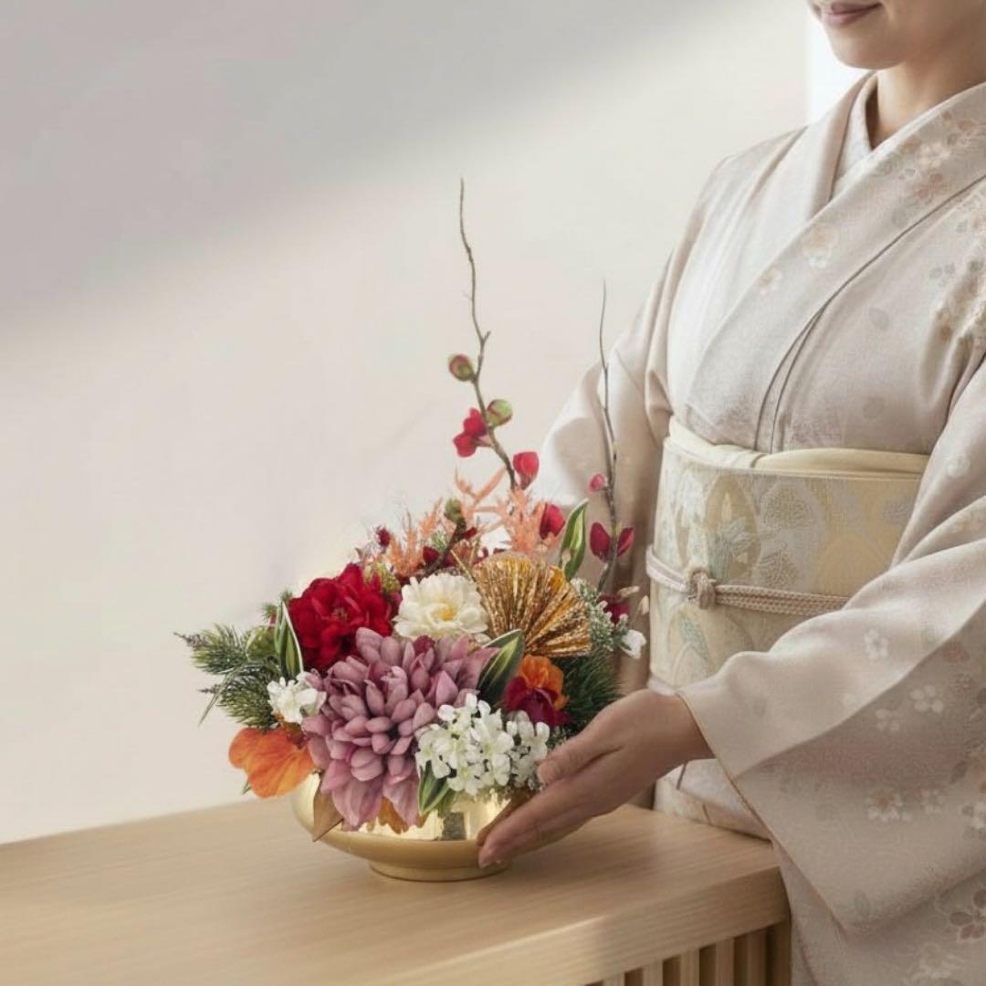 そっと置くだけで、空間に凛とした華やかさが灯り、まるでお祝いの風が舞い込んできたような佇まいに仕上がりました。