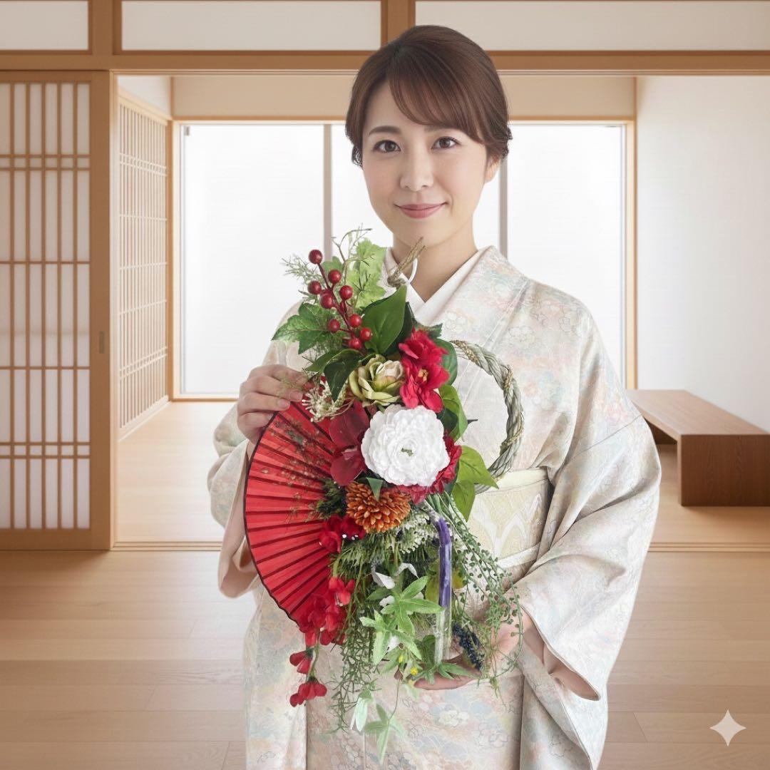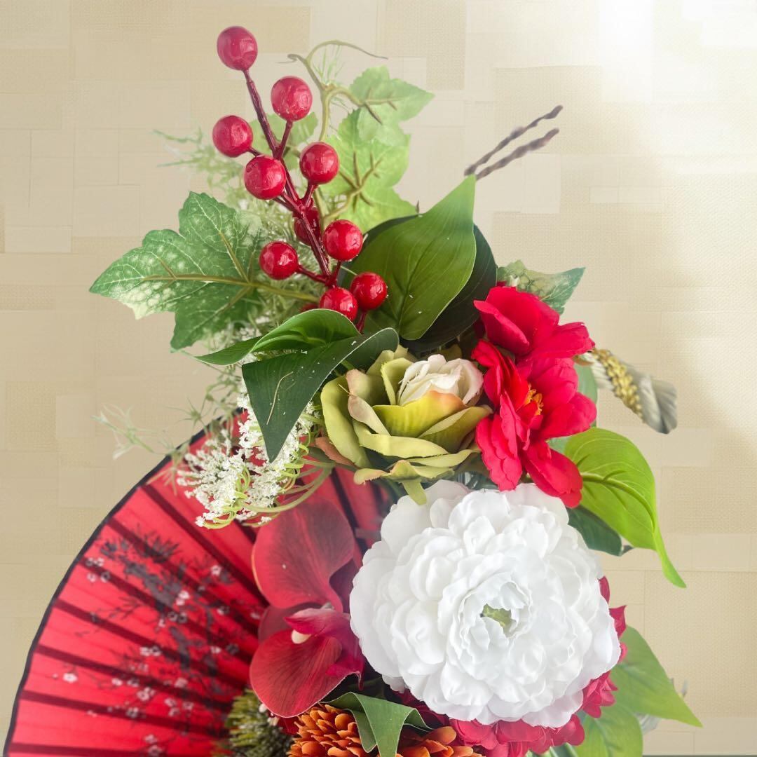 華やかに広がる扇、縁起の良いしめ縄、ゆらりと揺れるタッセル。