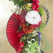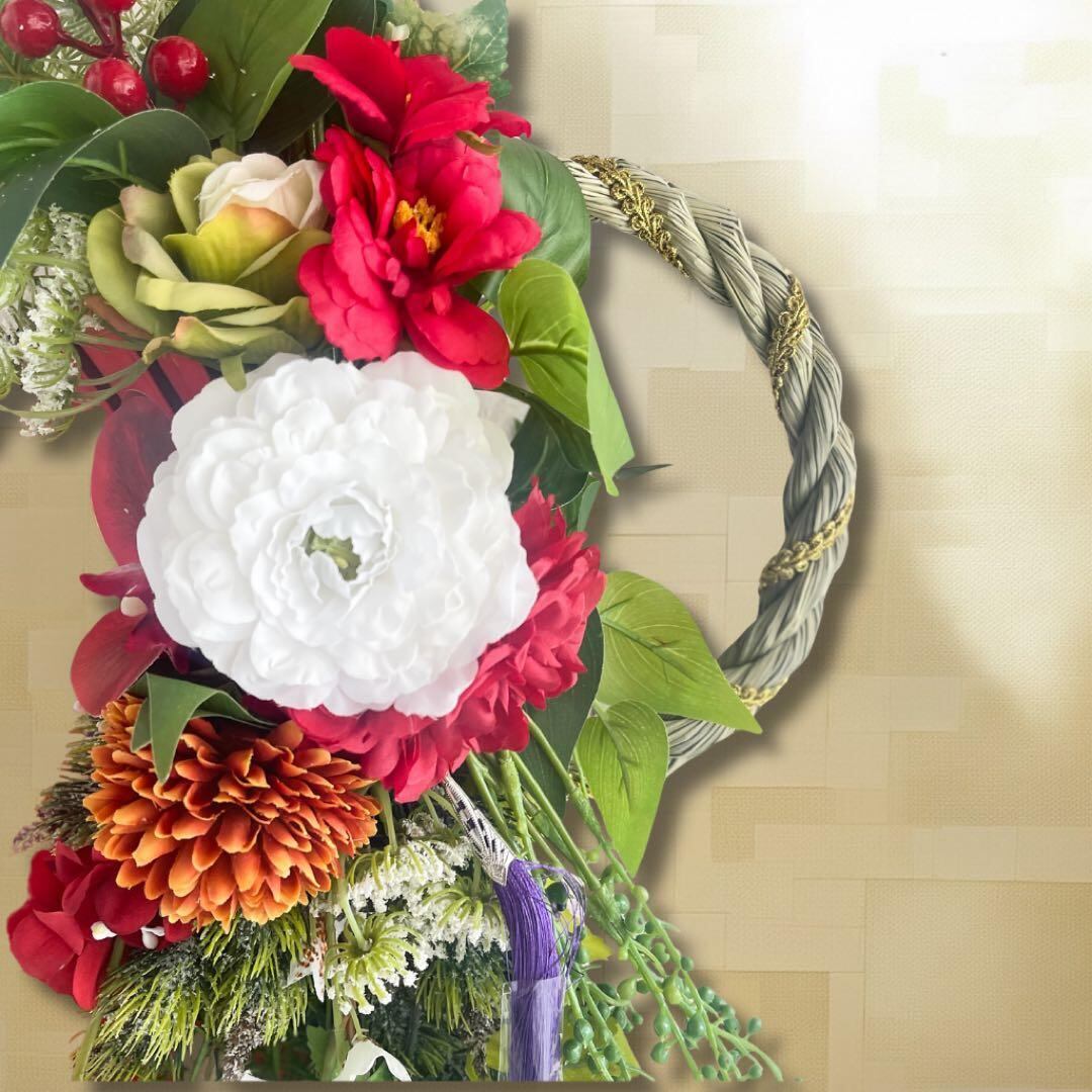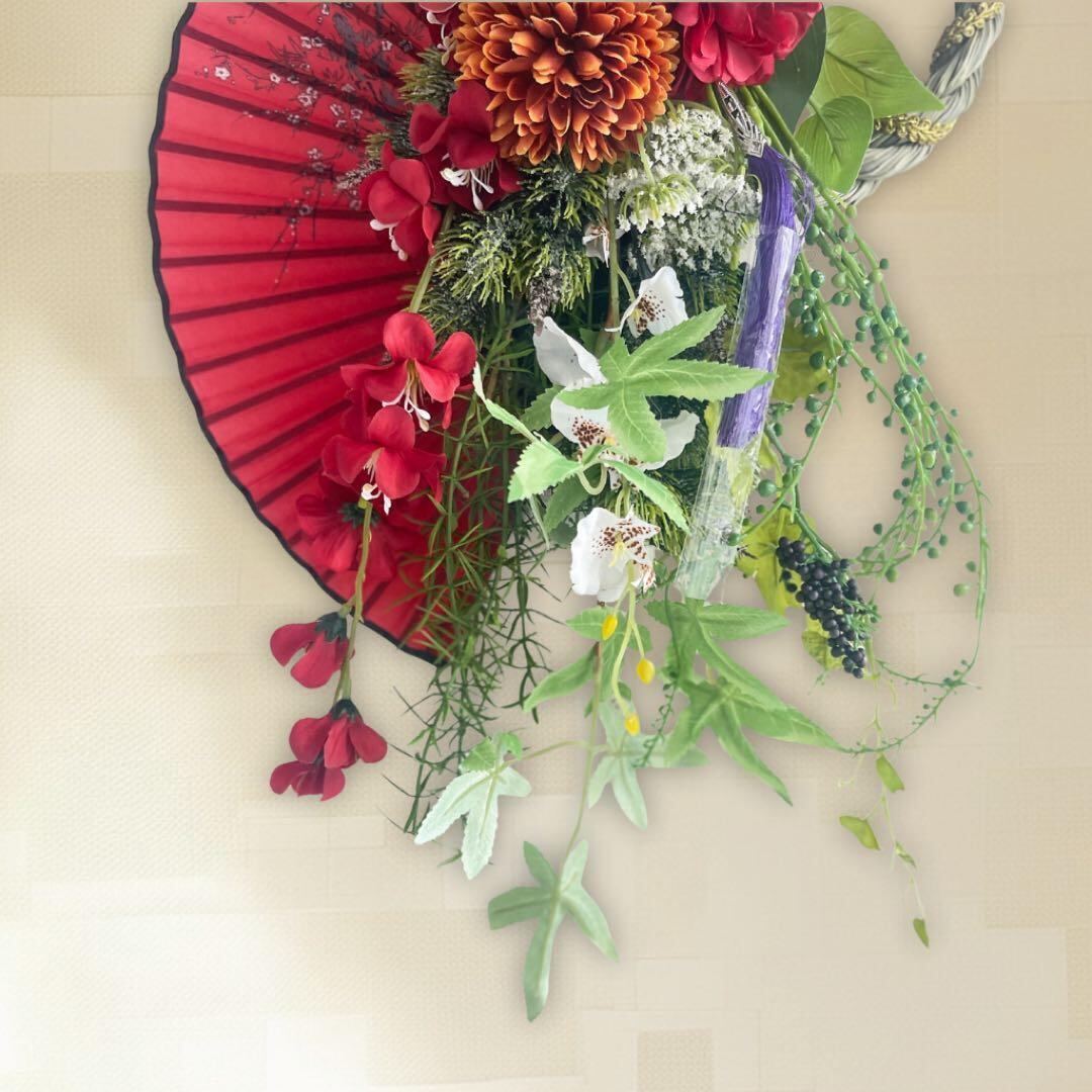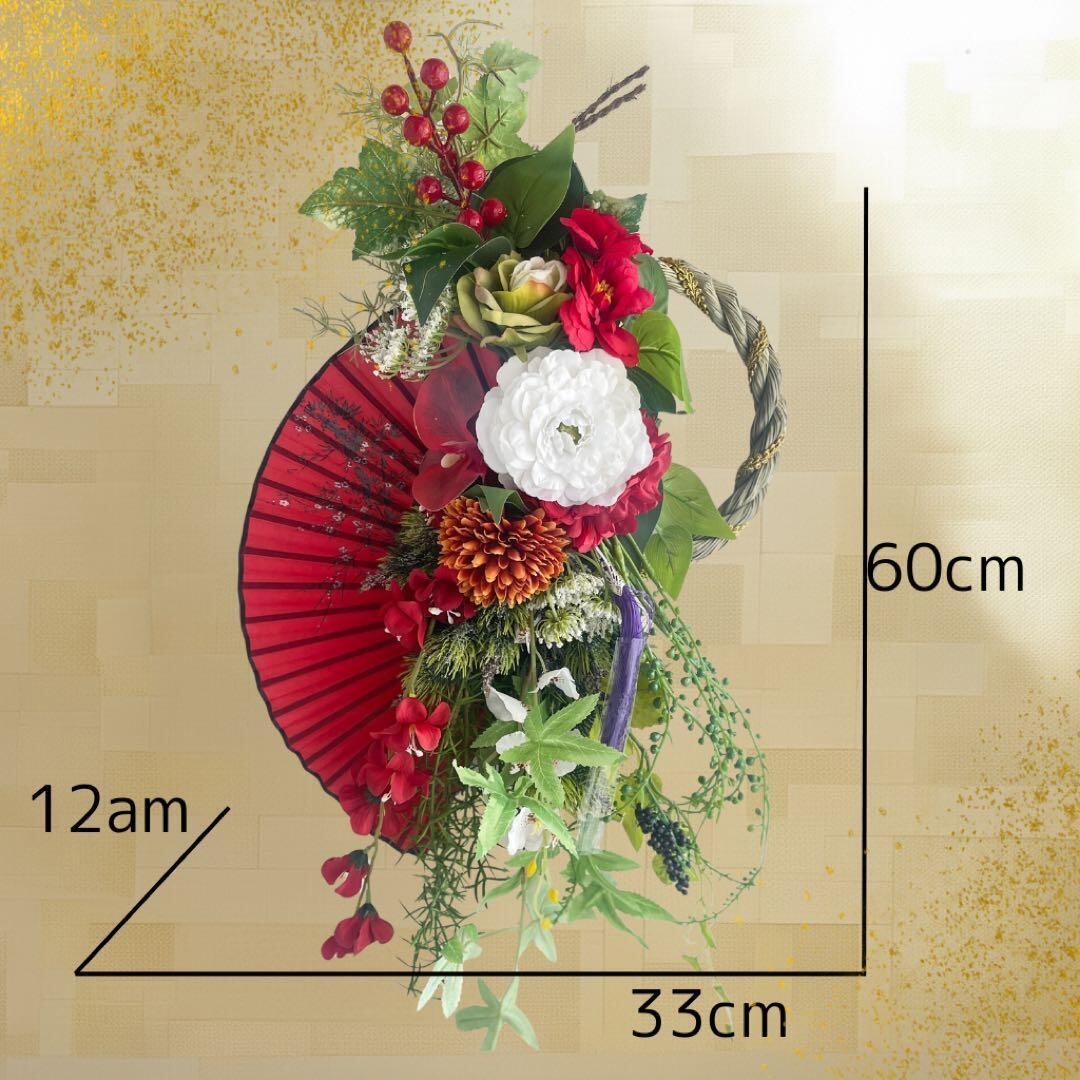 彩り扇のしめ縄リース・縦長シリーズ しめ飾り 正月飾り アートフラワー 造花