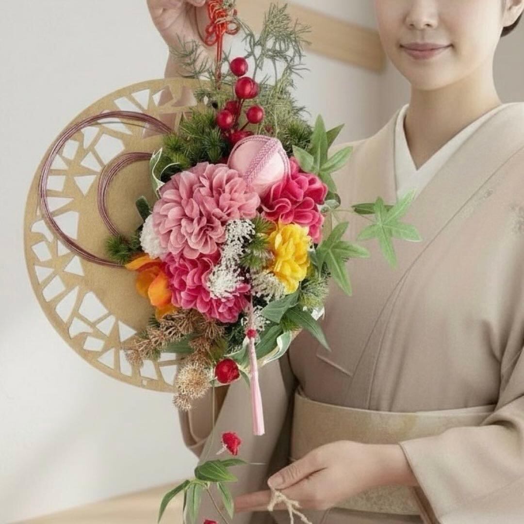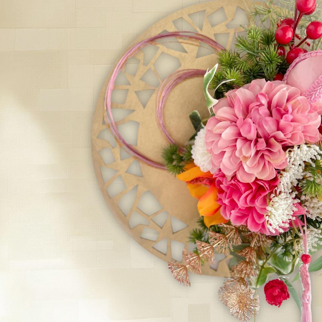 This modern Japanese-inspired wall decoration blends traditional motifs with contemporary floral design.