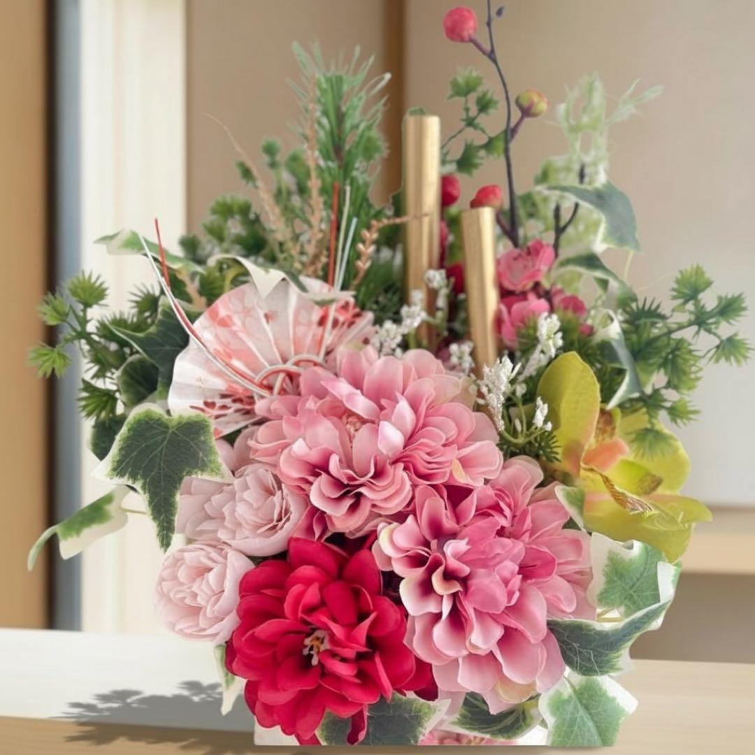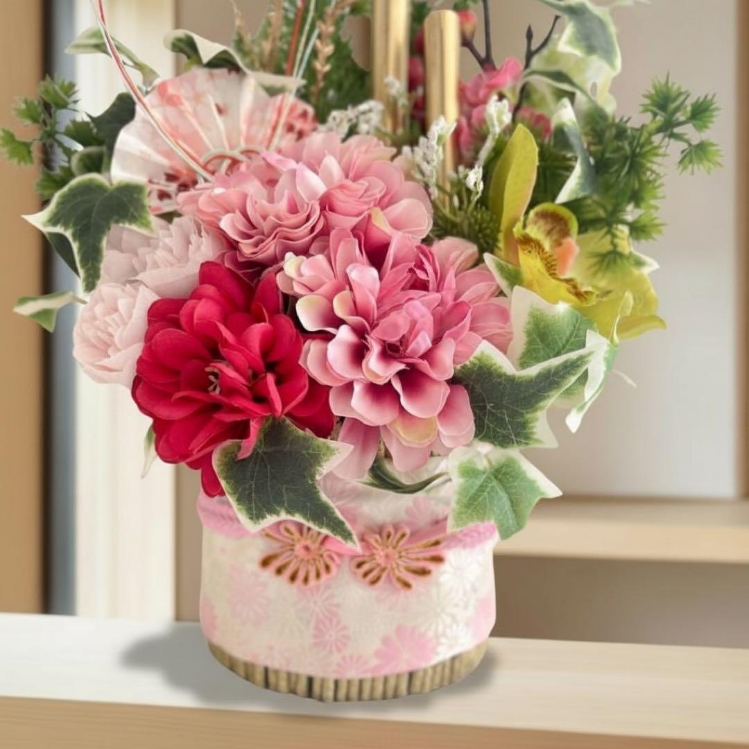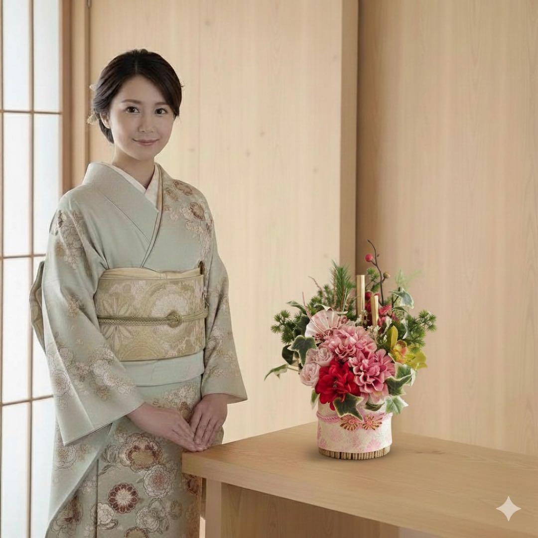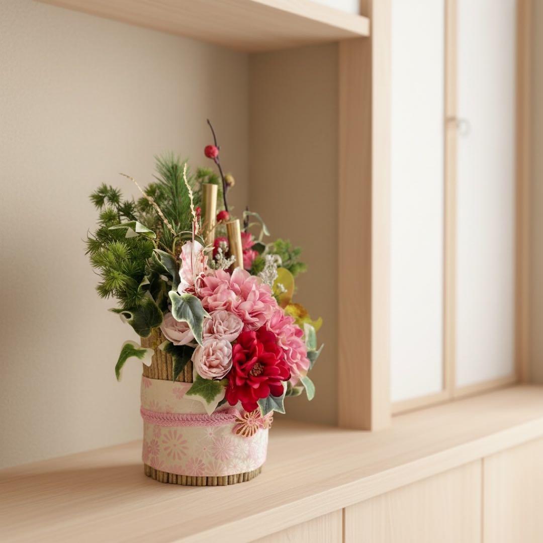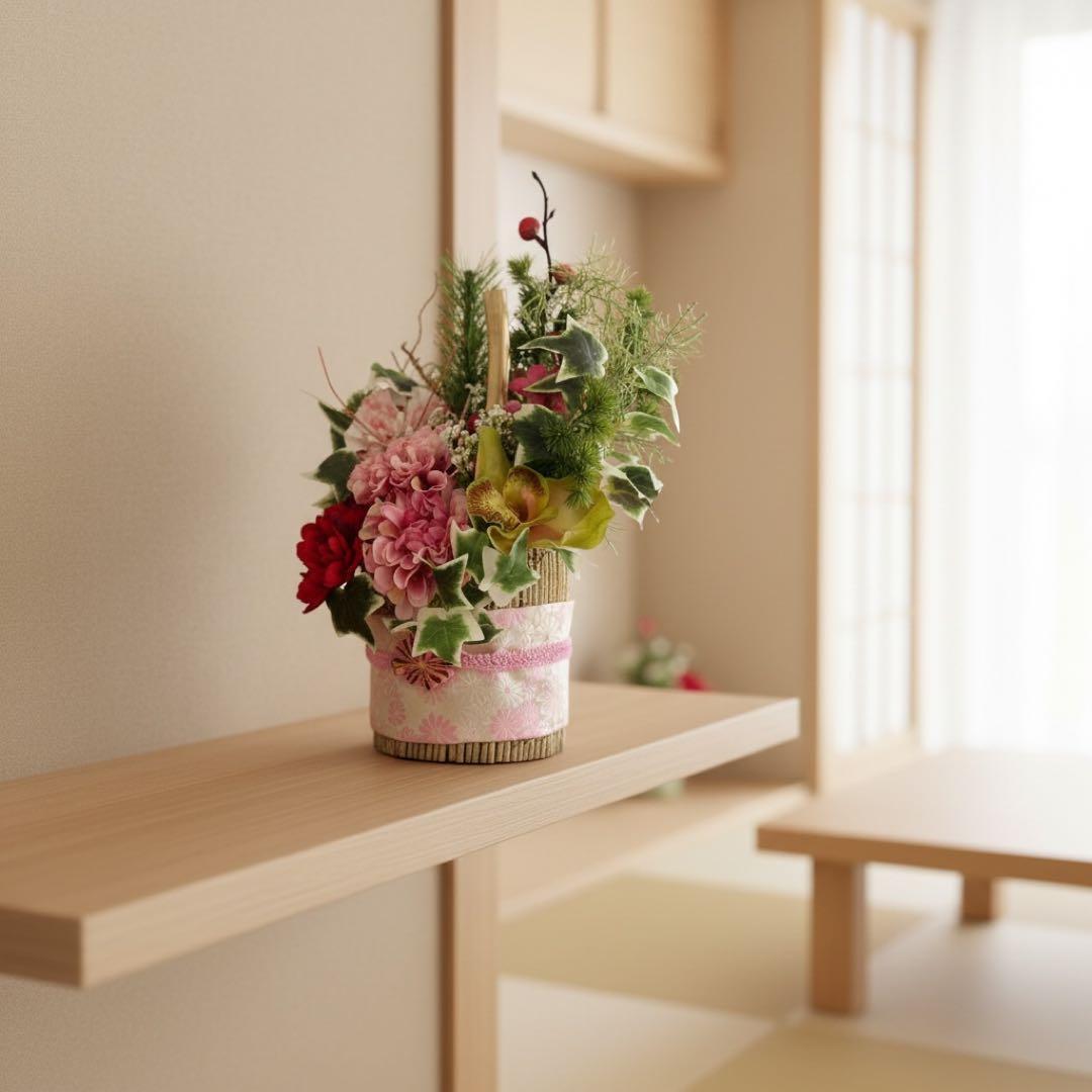 お正月を過ぎても「和のフラワーアレンジメント」として長くお楽しみいただけます。