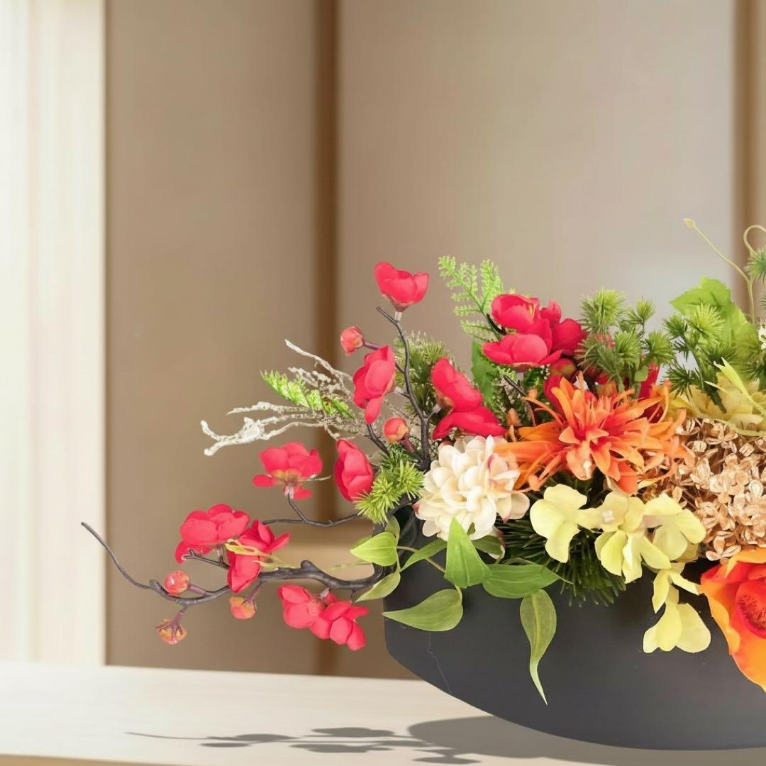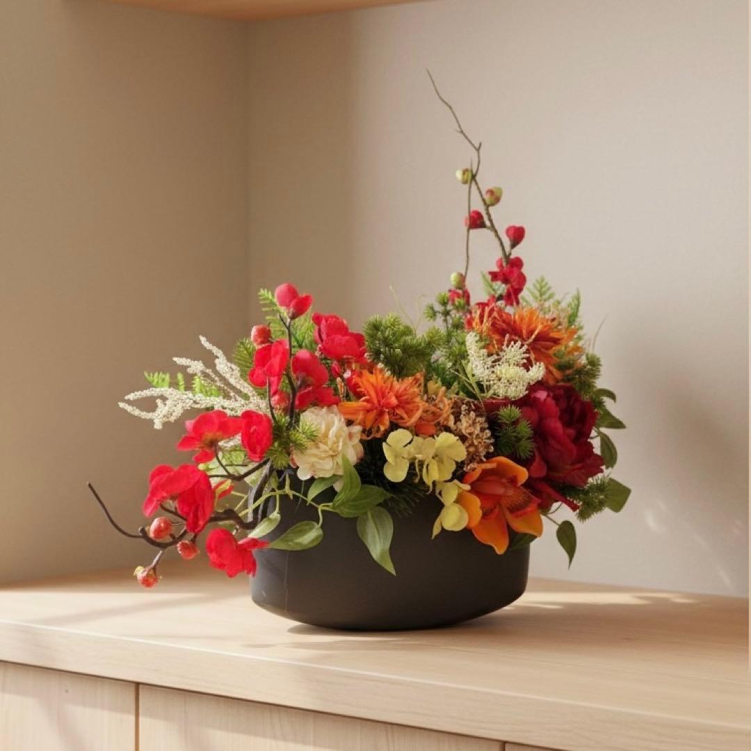 迎春飾り 新年を彩る正月アレンジ 光触媒フラワー 造花 新年飾り 和アレンジ アーティフィシャルフラワー