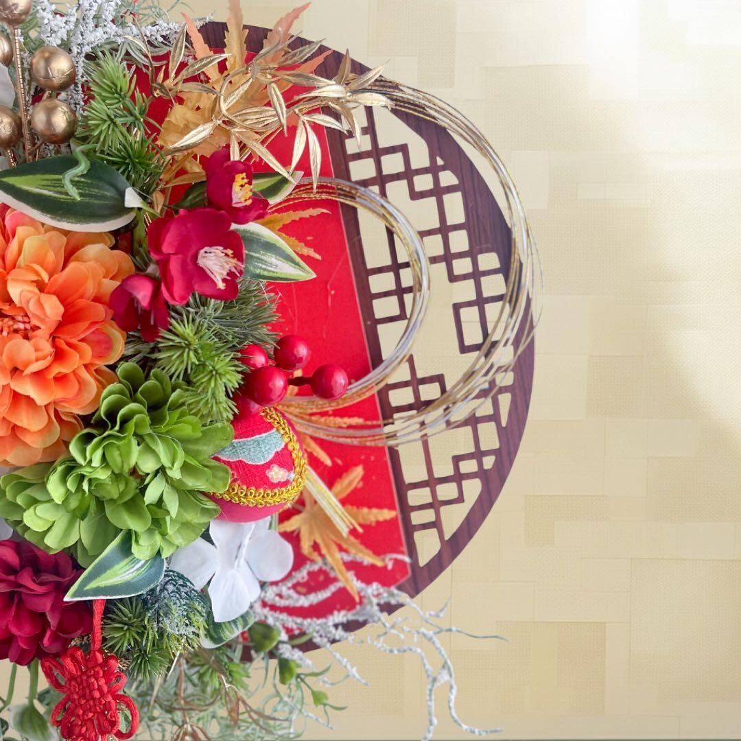 ㊵ プレミアムしめ縄リース|和モダン迎春飾り 造花 正月飾り 和飾り