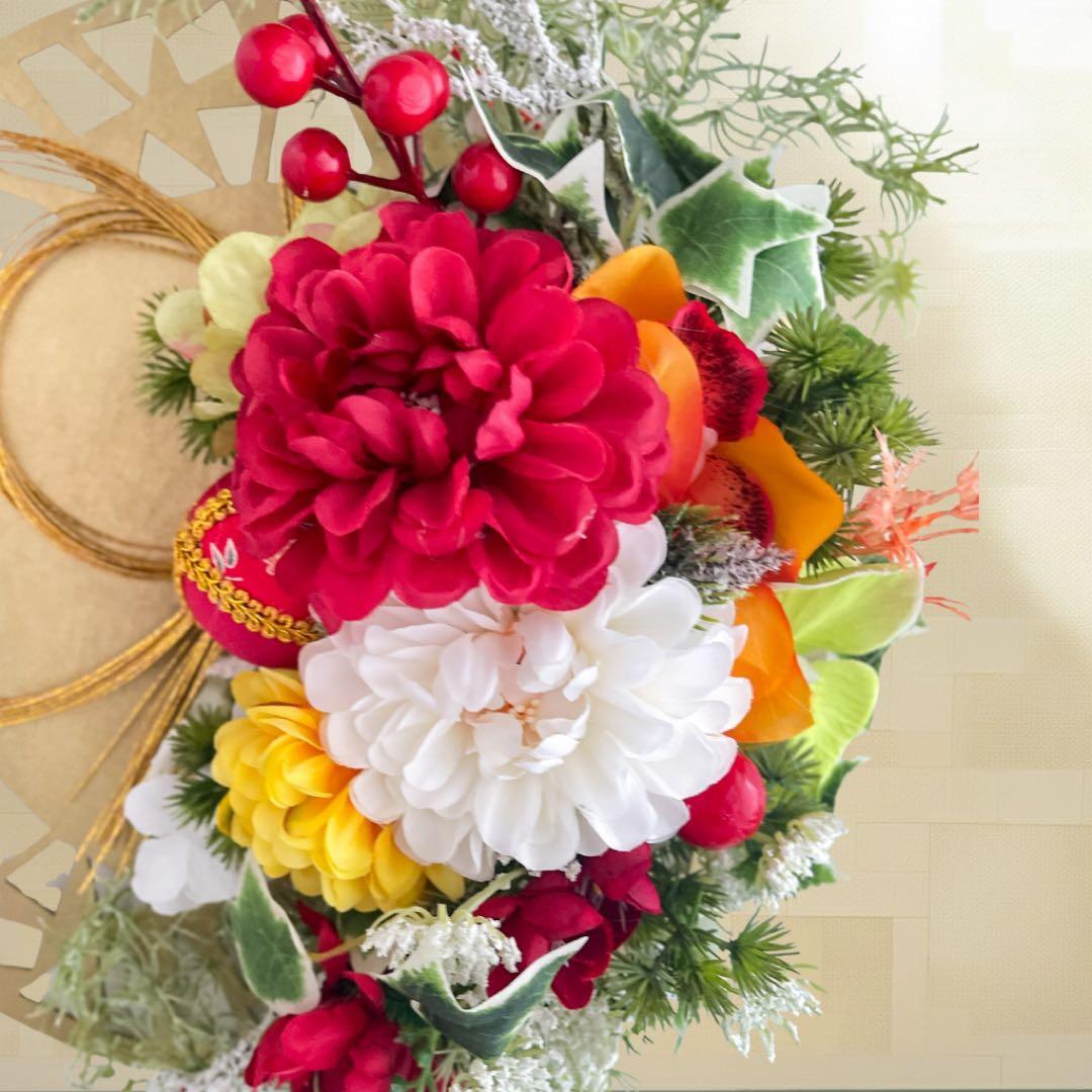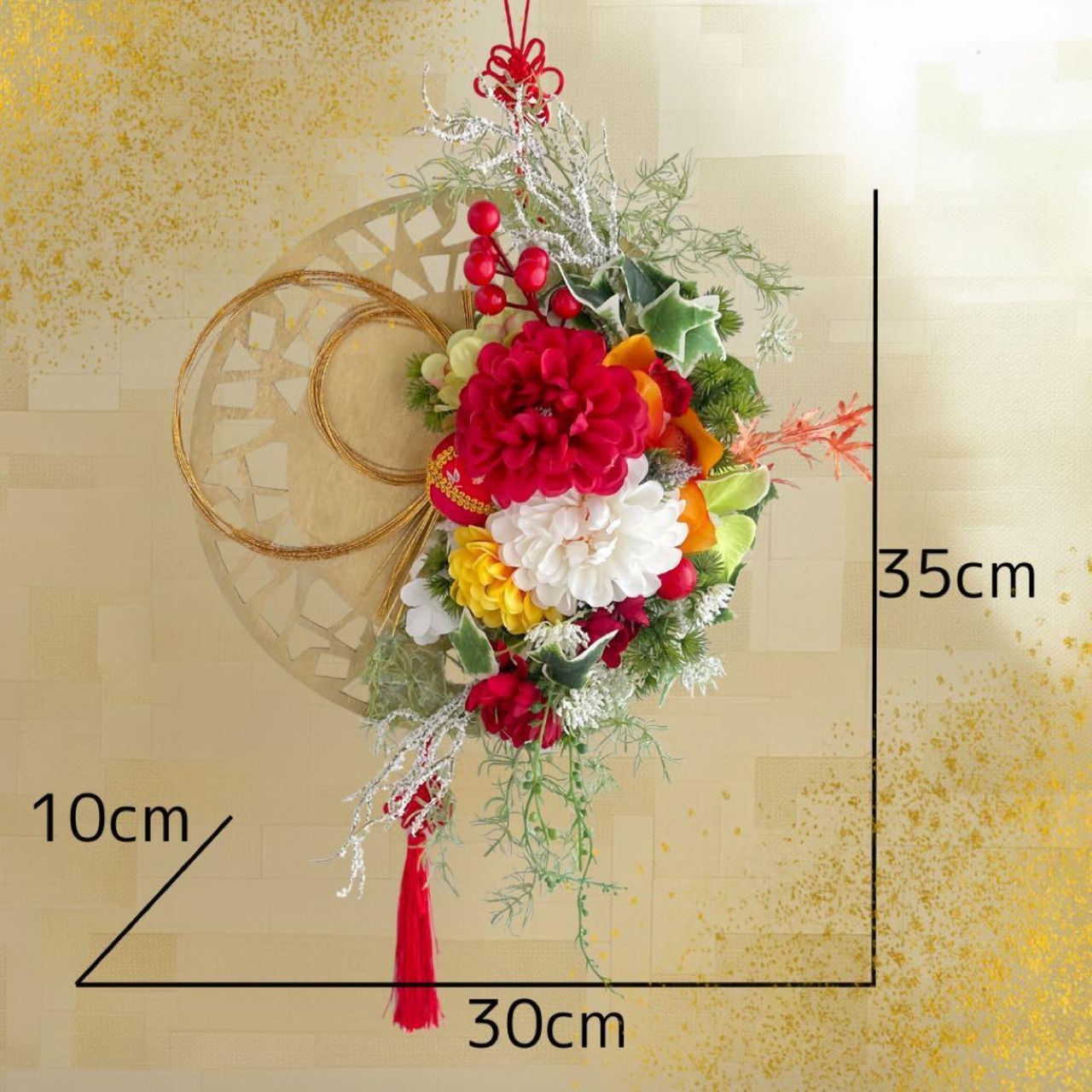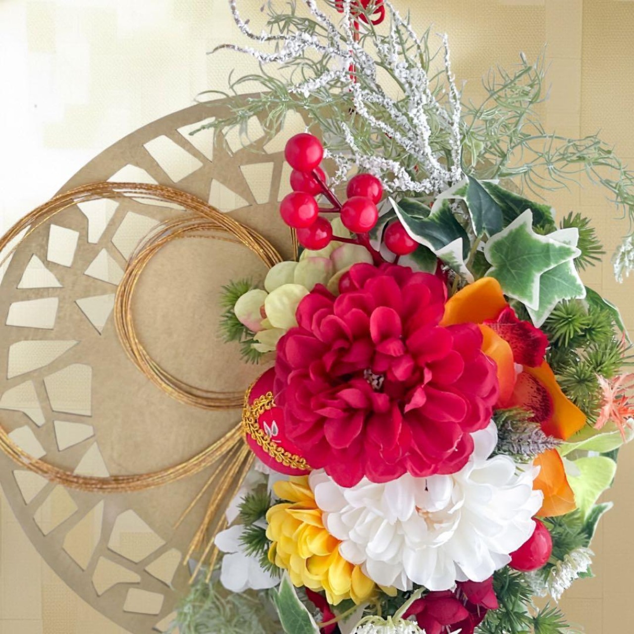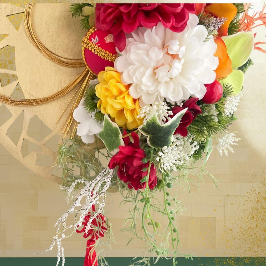 ㊴ 迎春しめ縄|和モダン新年飾り|玄関にも室内にも飾れるアートフラワーインテリア