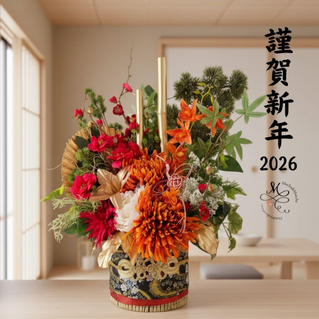 新しい一年を迎える空間に、ひときわ凛とした気品を添えてくれるモカアンドマルシェのLサイズ門松アレンジメント。