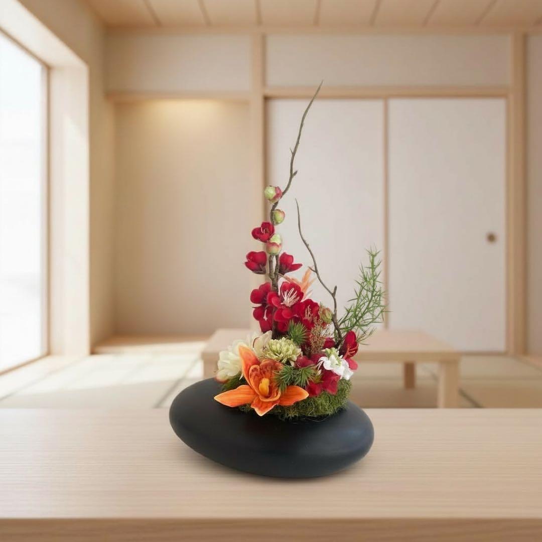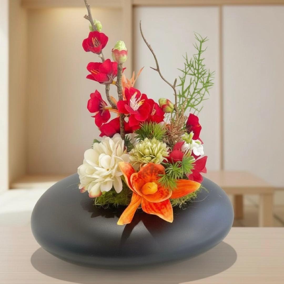 花器の和モダンアレンジメント|上品なお正月・和風フラワーギフト 新年飾り