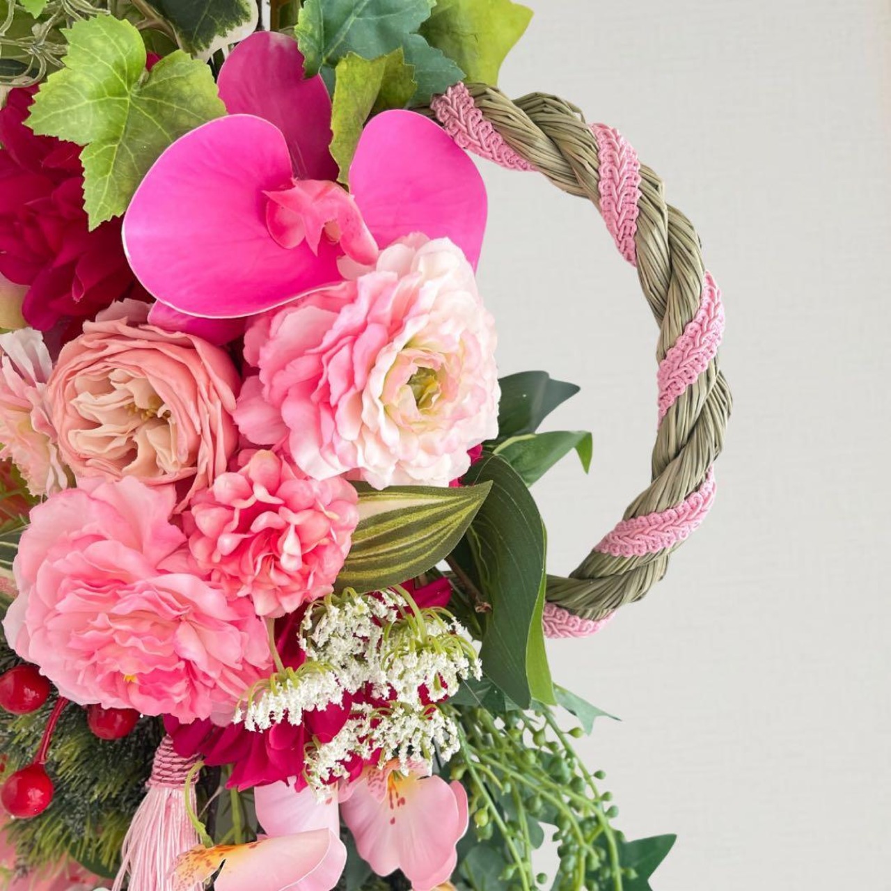 しめ縄と合わせることで、幸せが花開くよう願いを込めた、世界にひとつだけの一点ものです。