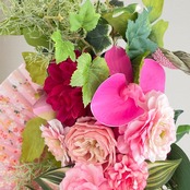 ふんわりと広がる扇のシルエットに、お花やグリーンをたっぷり束ねた、モカアンドマルシェならではの可愛らしさが詰まった人気の作品です。