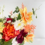 主役には、ダリアと大輪の芍薬を中心に、蘭や菊、椿、小百合をバランスよく配置。