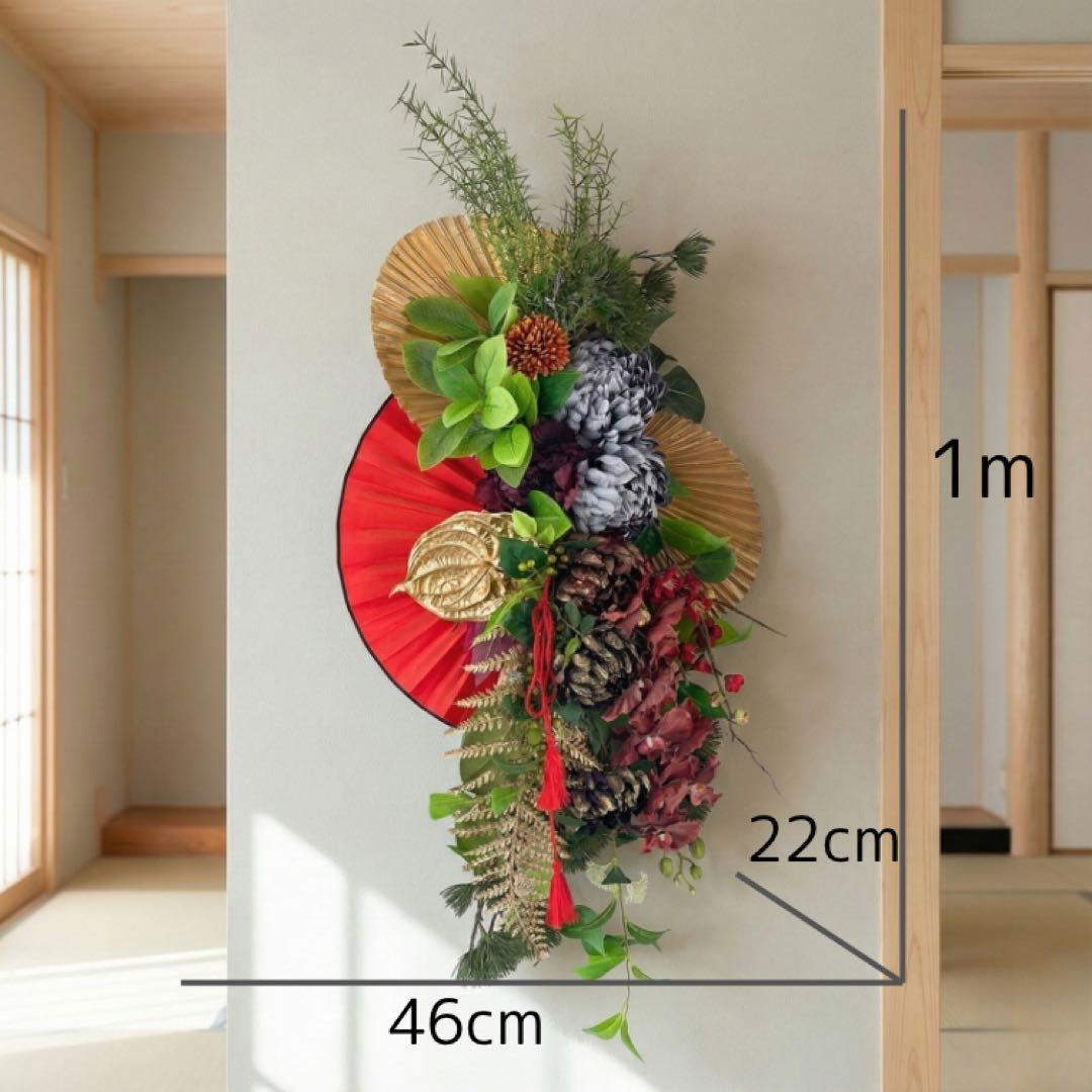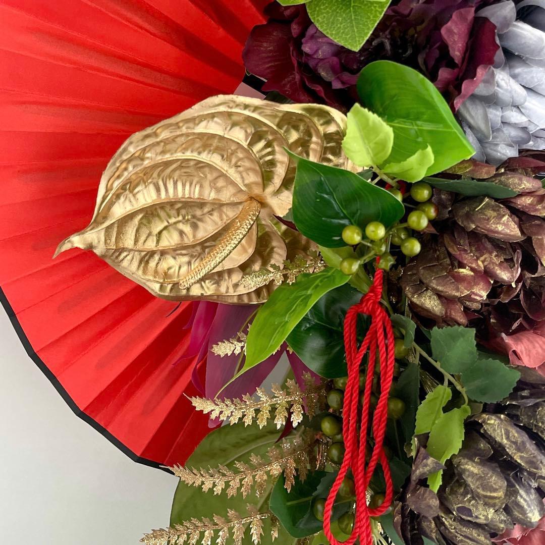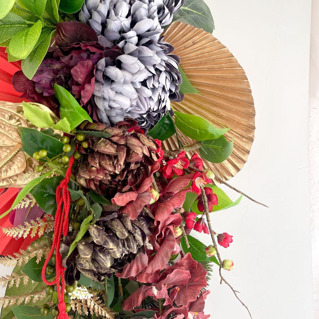「新しい年を迎える象徴」として、空間の印象を一気に引き上げる、存在感重視の正月しめ縄リースです。