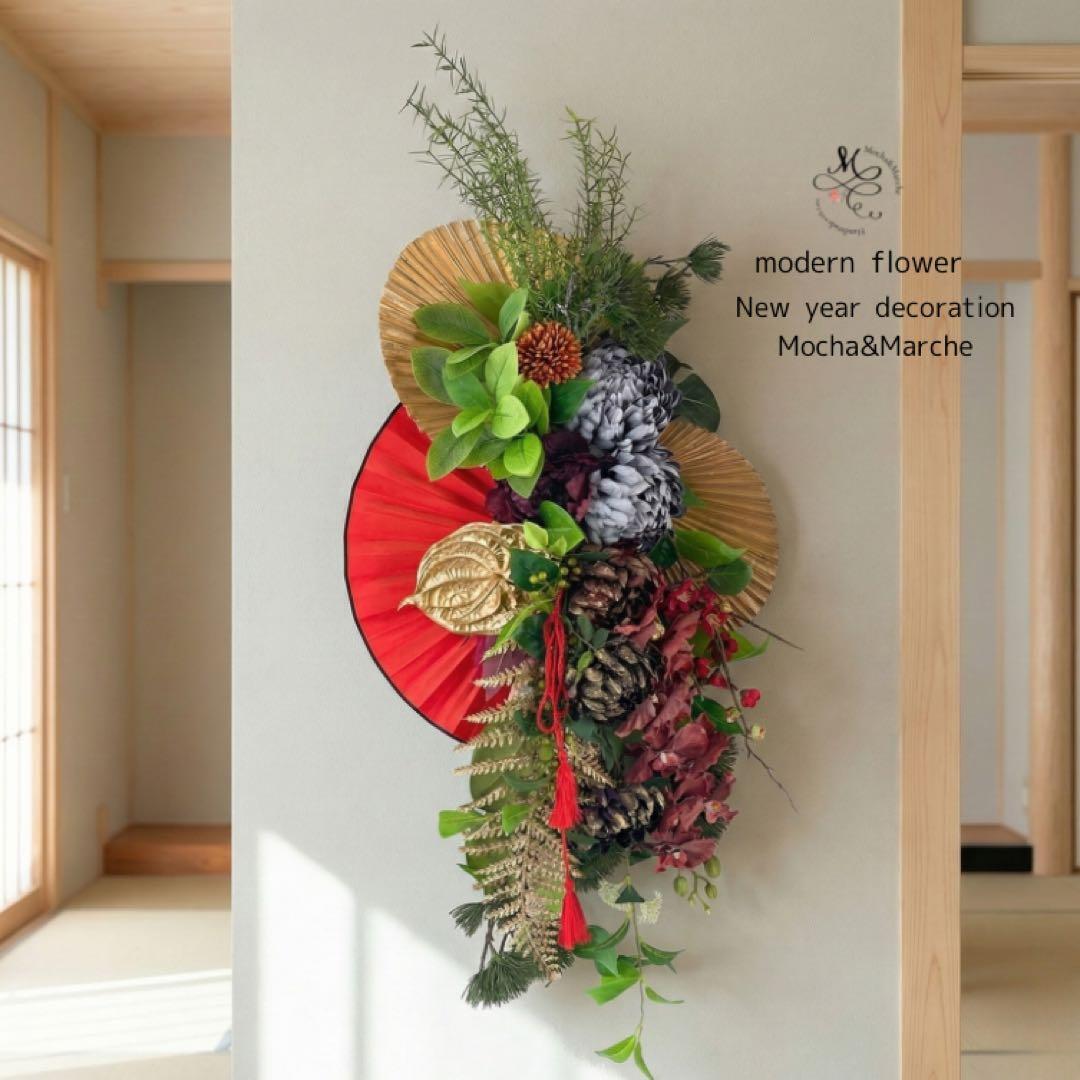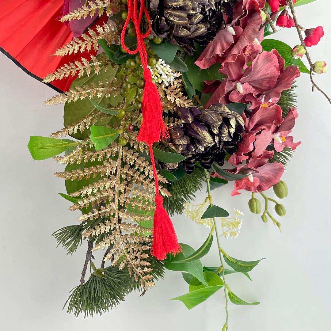 赤い扇モチーフが新年の「晴れ」を象徴し、和モダンでありながら格式ある迎春空間を演出。
