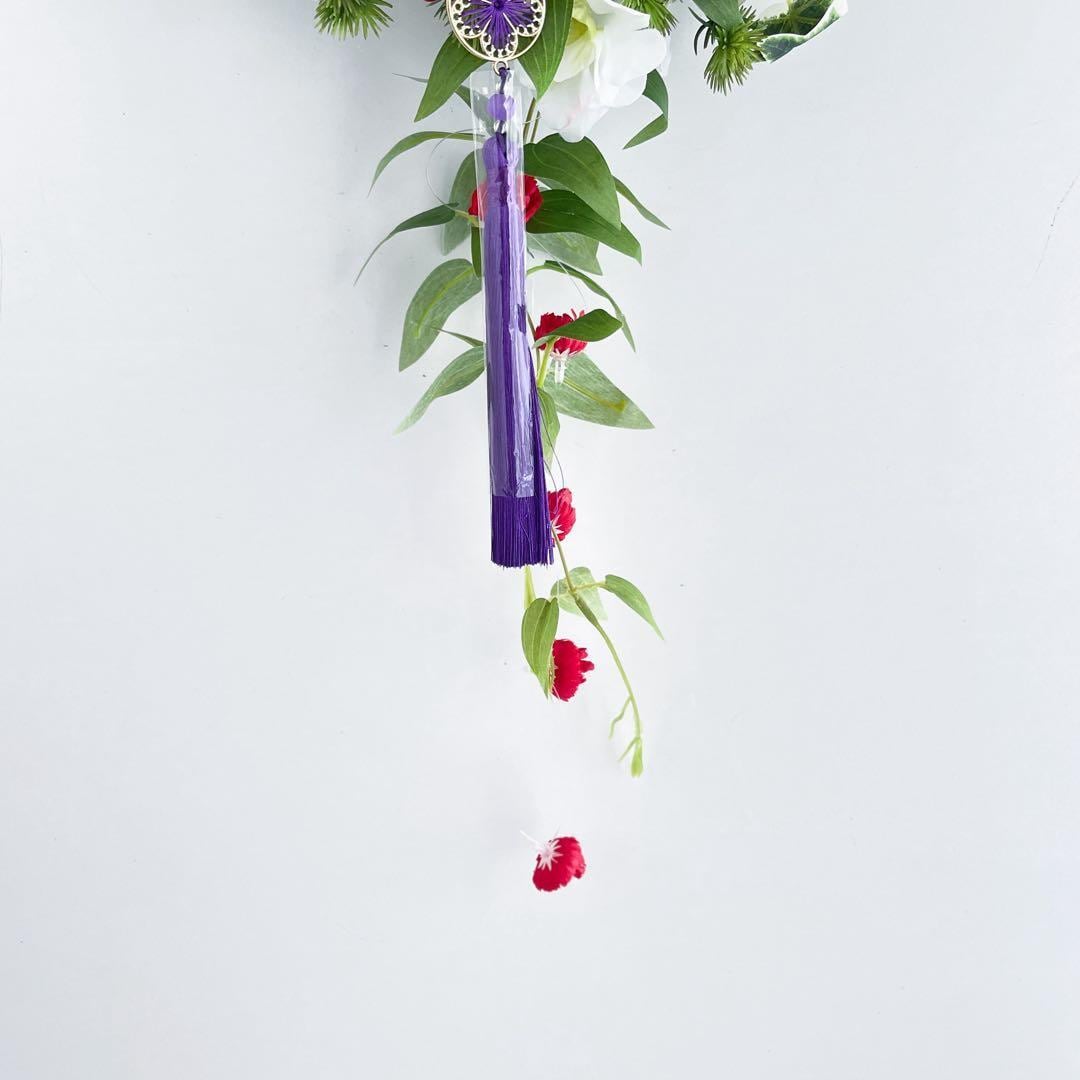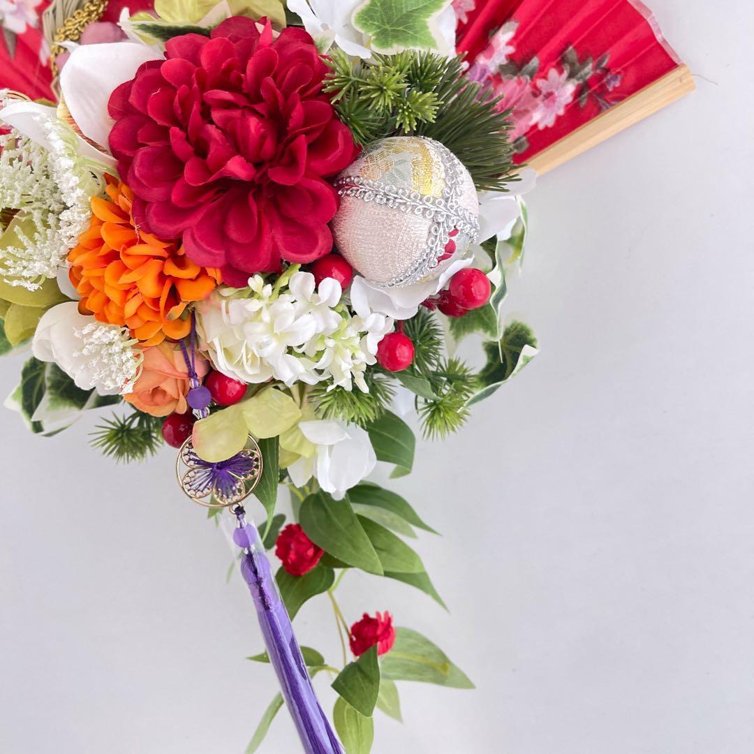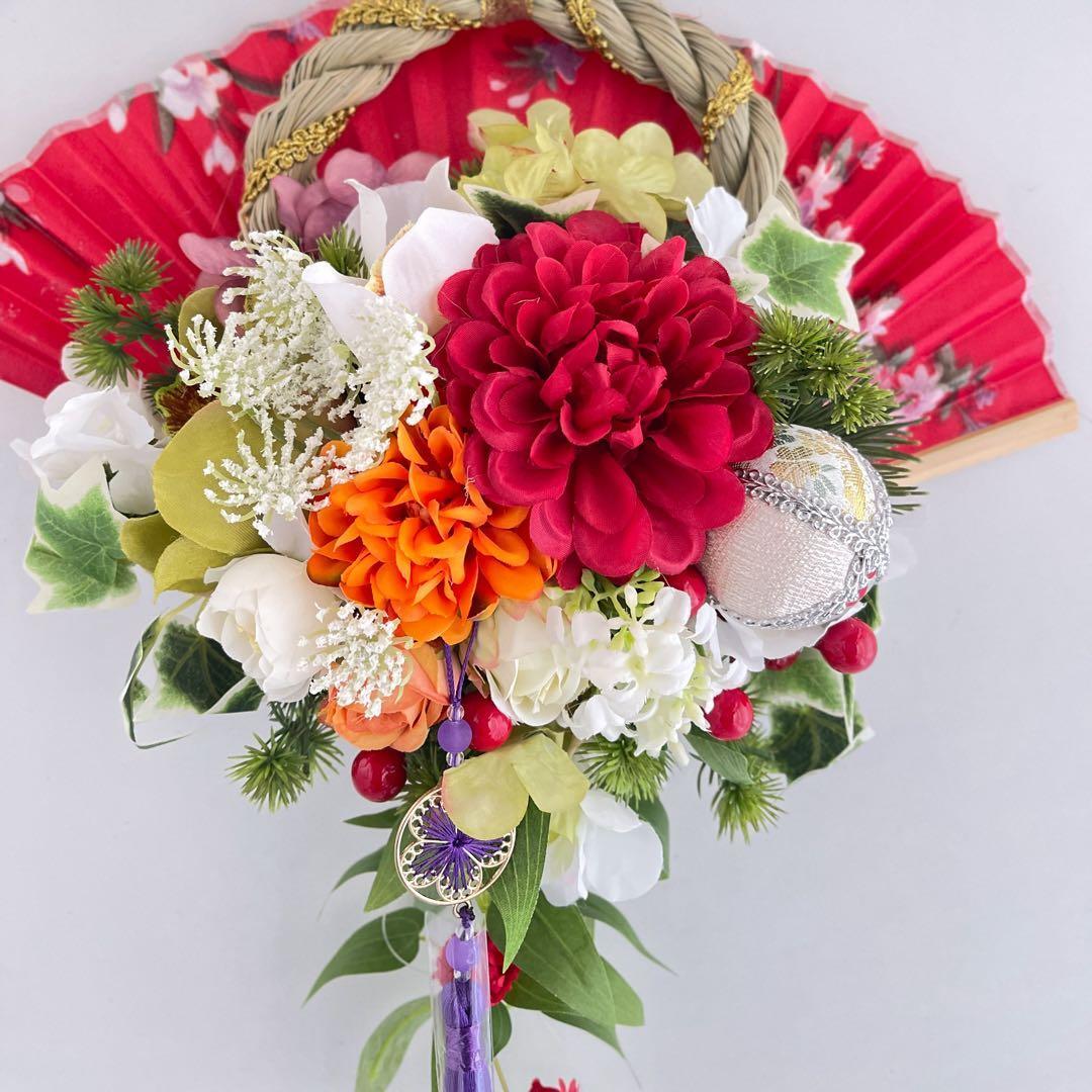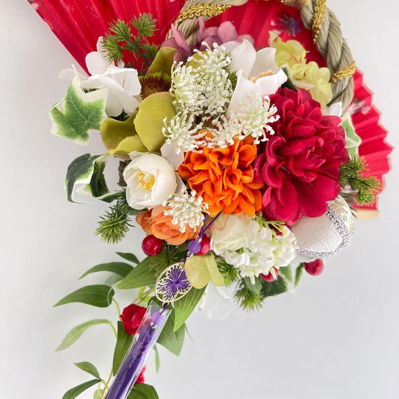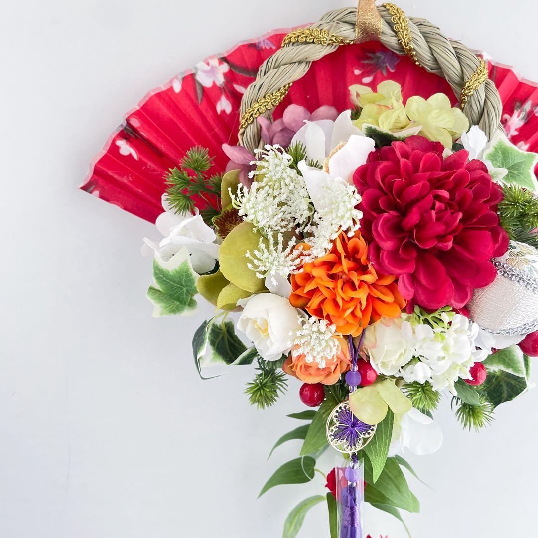 しめ縄と合わせることで、幸せが花開くよう願いを込めた、世界にひとつだけの一点ものです。