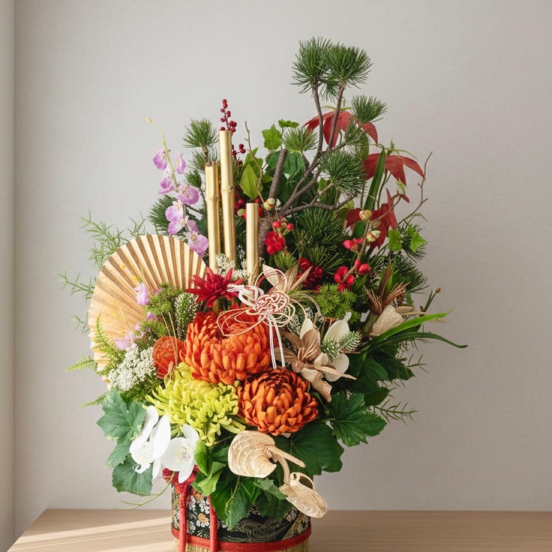 新しい年の始まりにふさわしい、圧倒的な存在感を放つ特大サイズのお正月アレンジメントです。