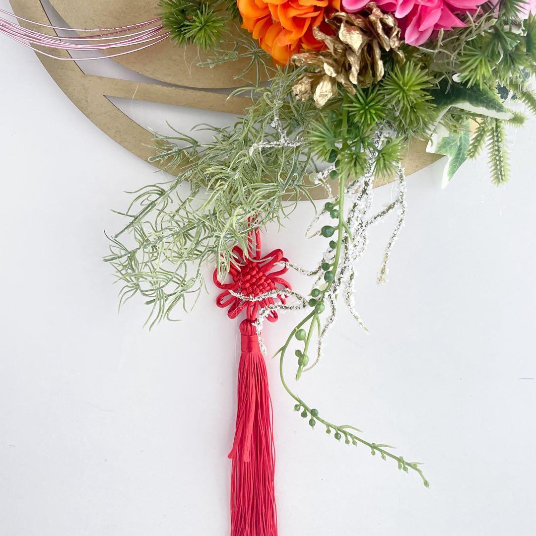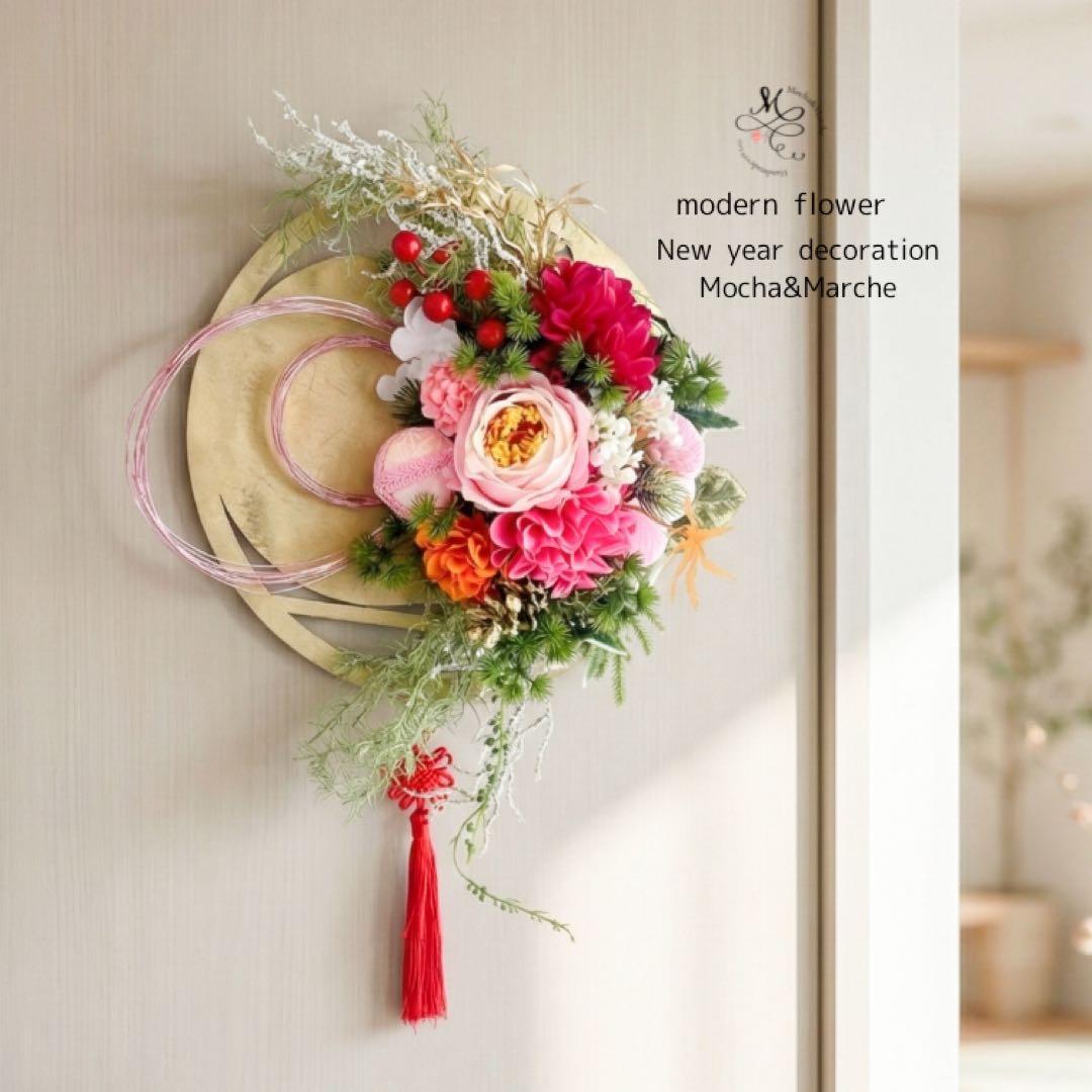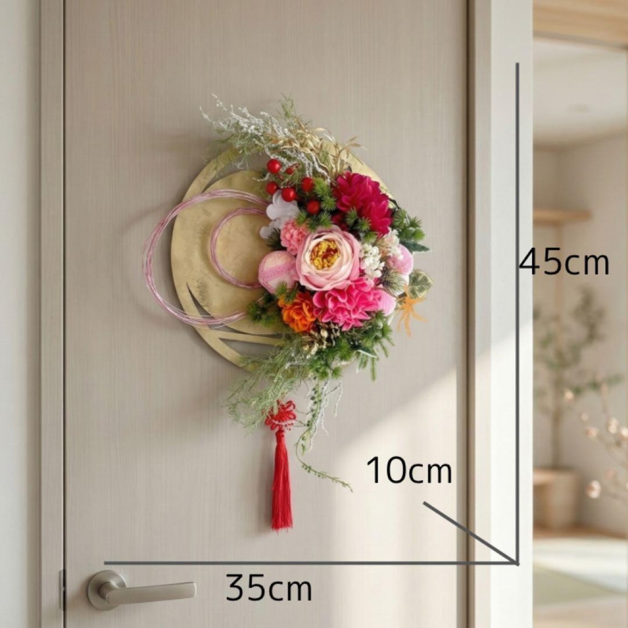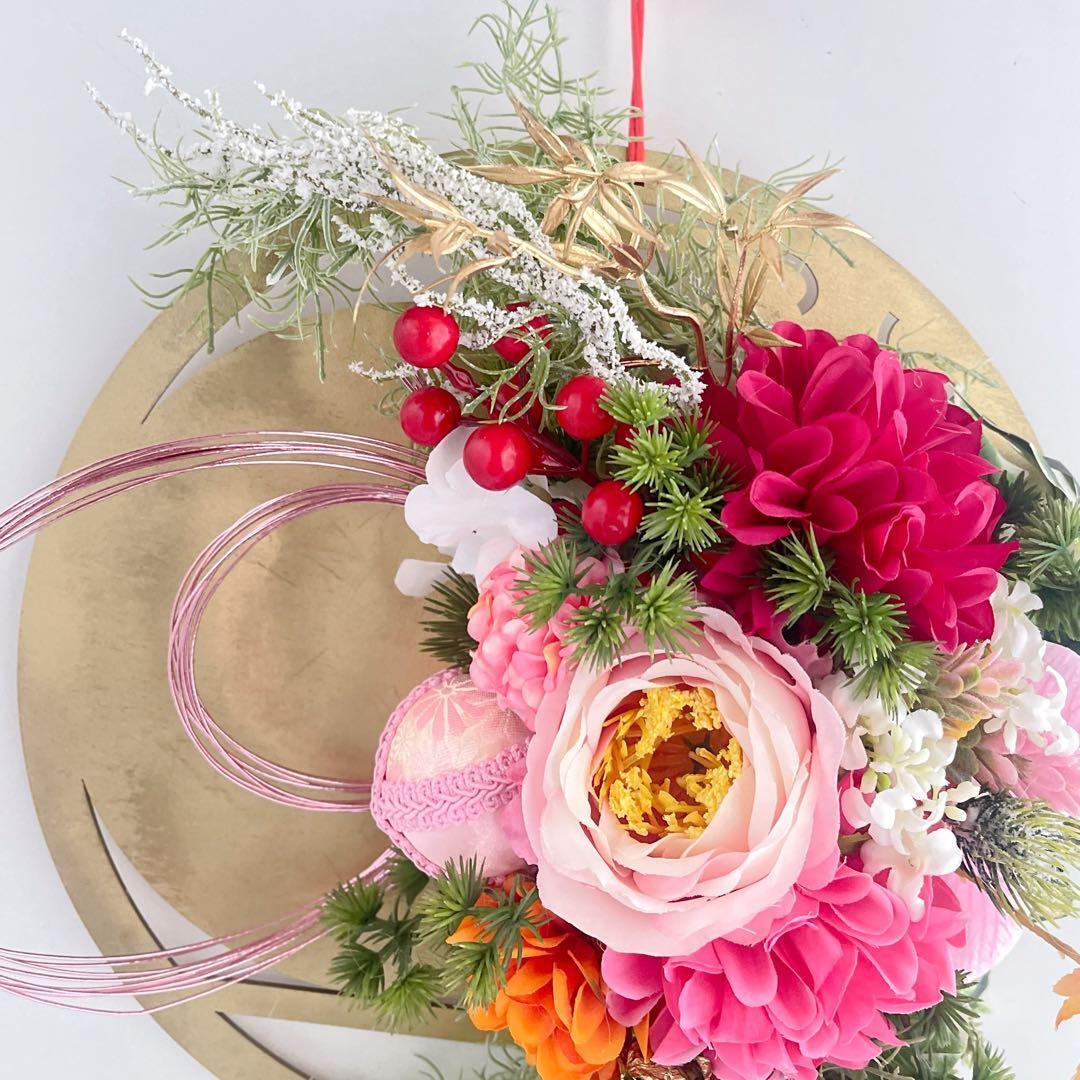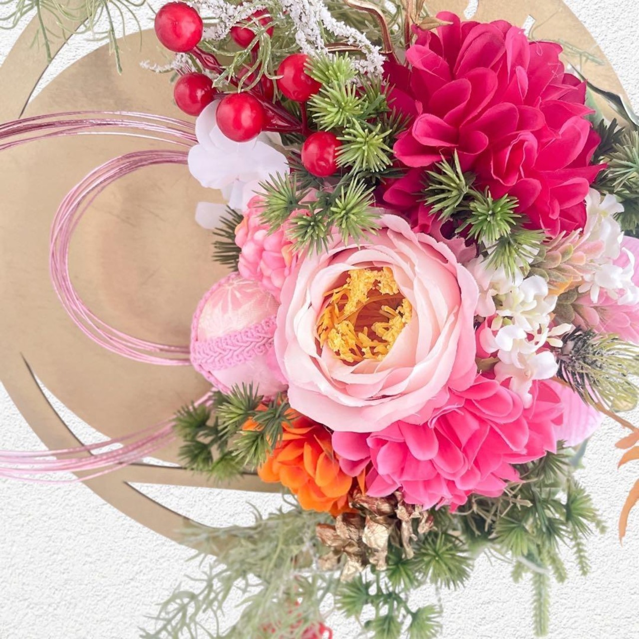 新年を彩る ピンクのしめ縄リース 正月飾り 造花 しめ縄飾り しめ飾り㊷