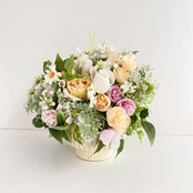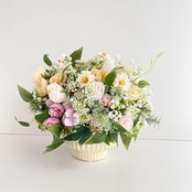 「おはよう」と目が合うたびに、心がふっとほどけるような、そんな春のひとときを届けてくれるアレンジメントです。