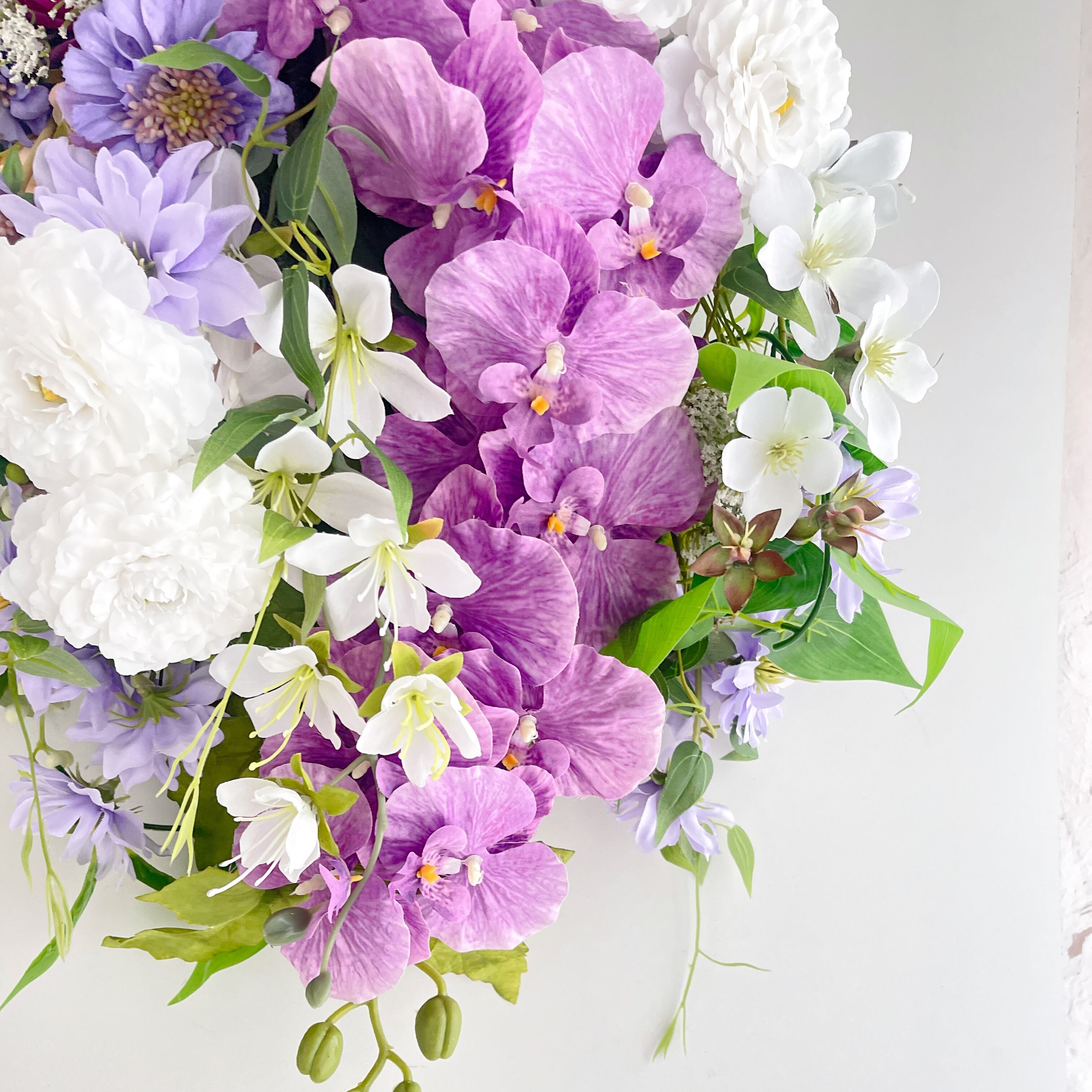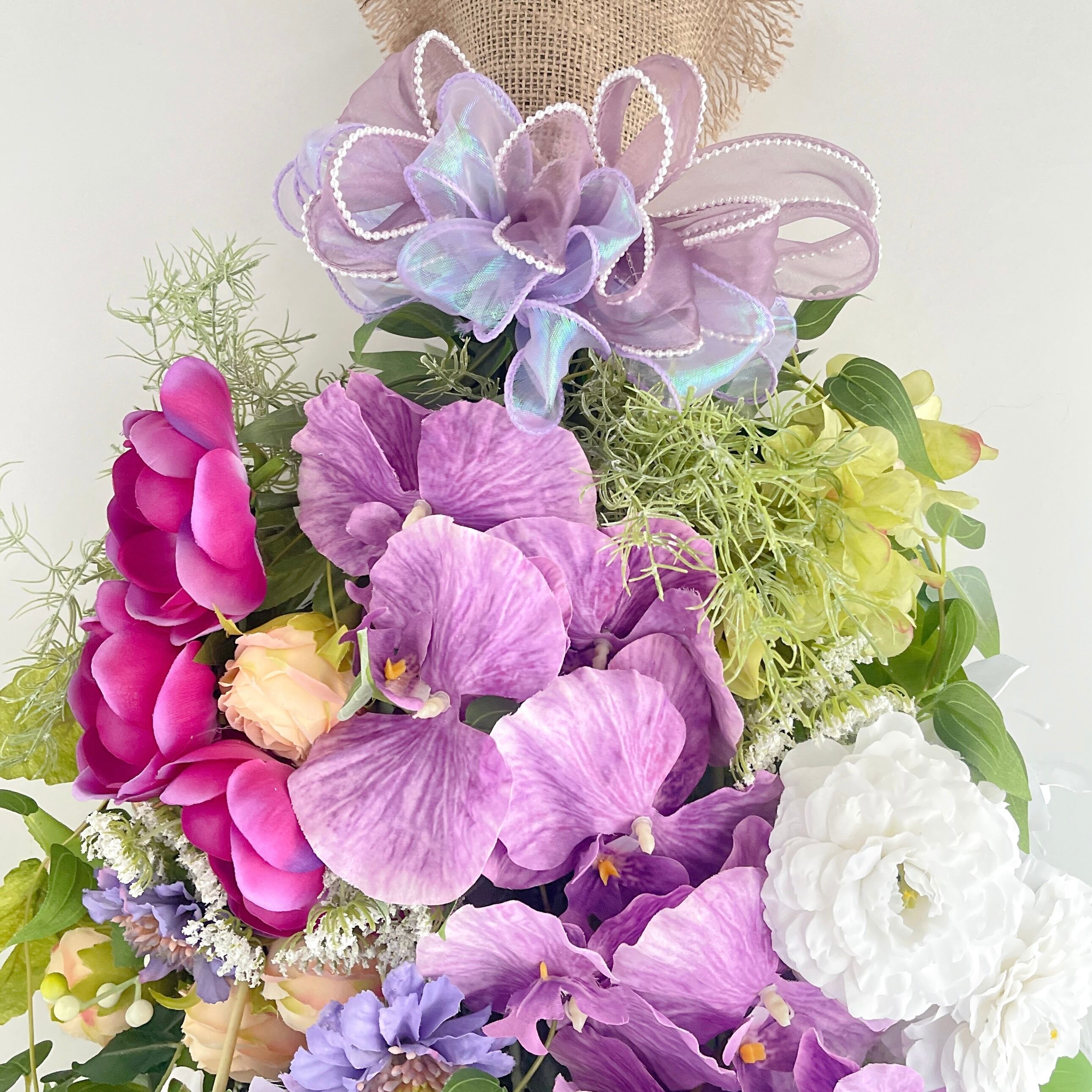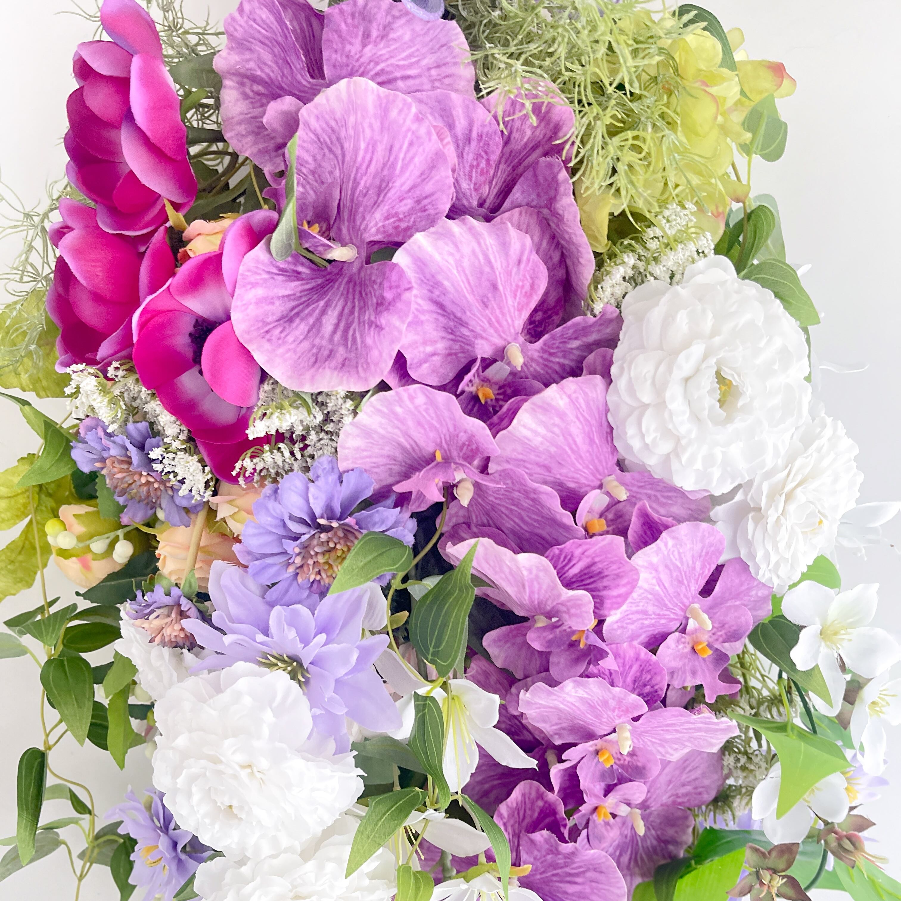胡蝶蘭の華やかなフラワースワッグ 光触媒フラワー 開店祝いや誕生日や記念日に アーティフィシャルフラワー