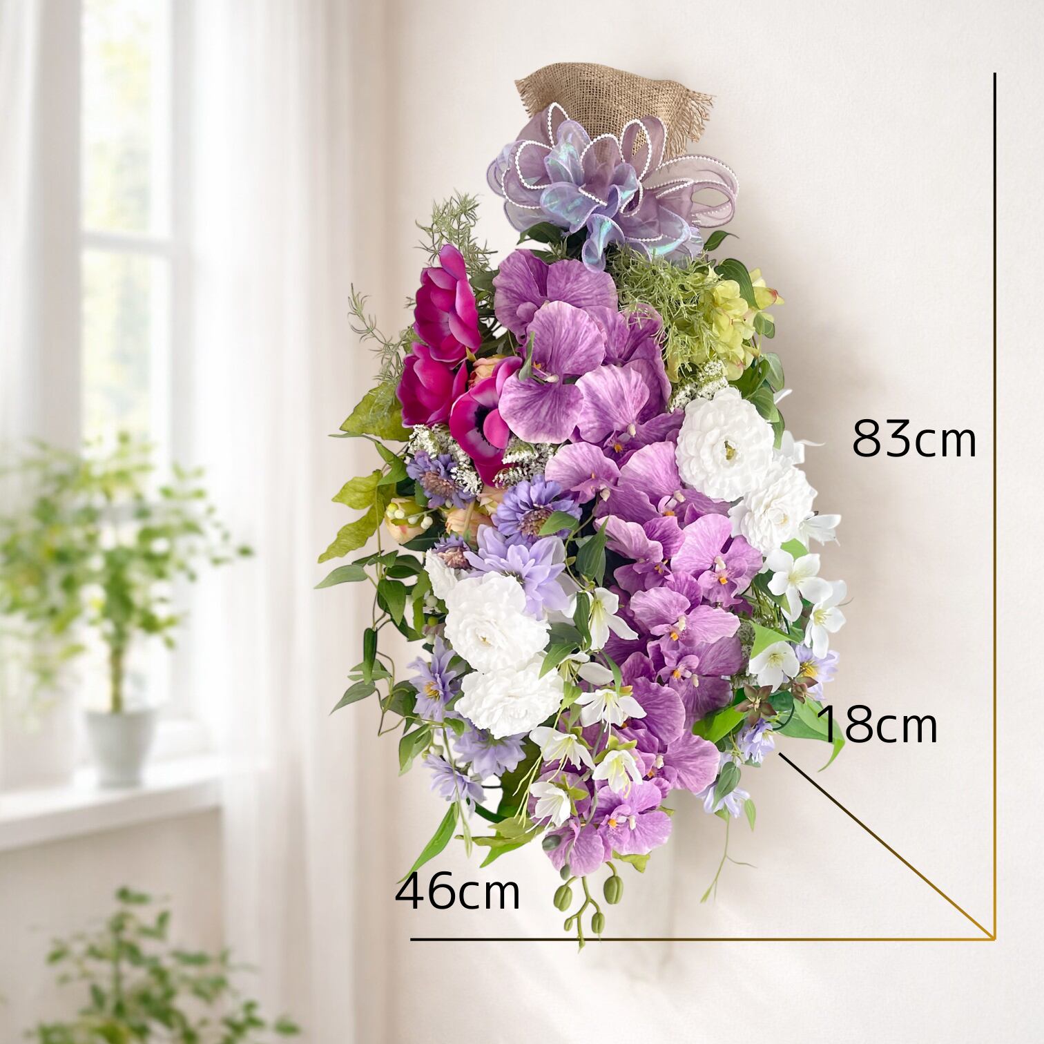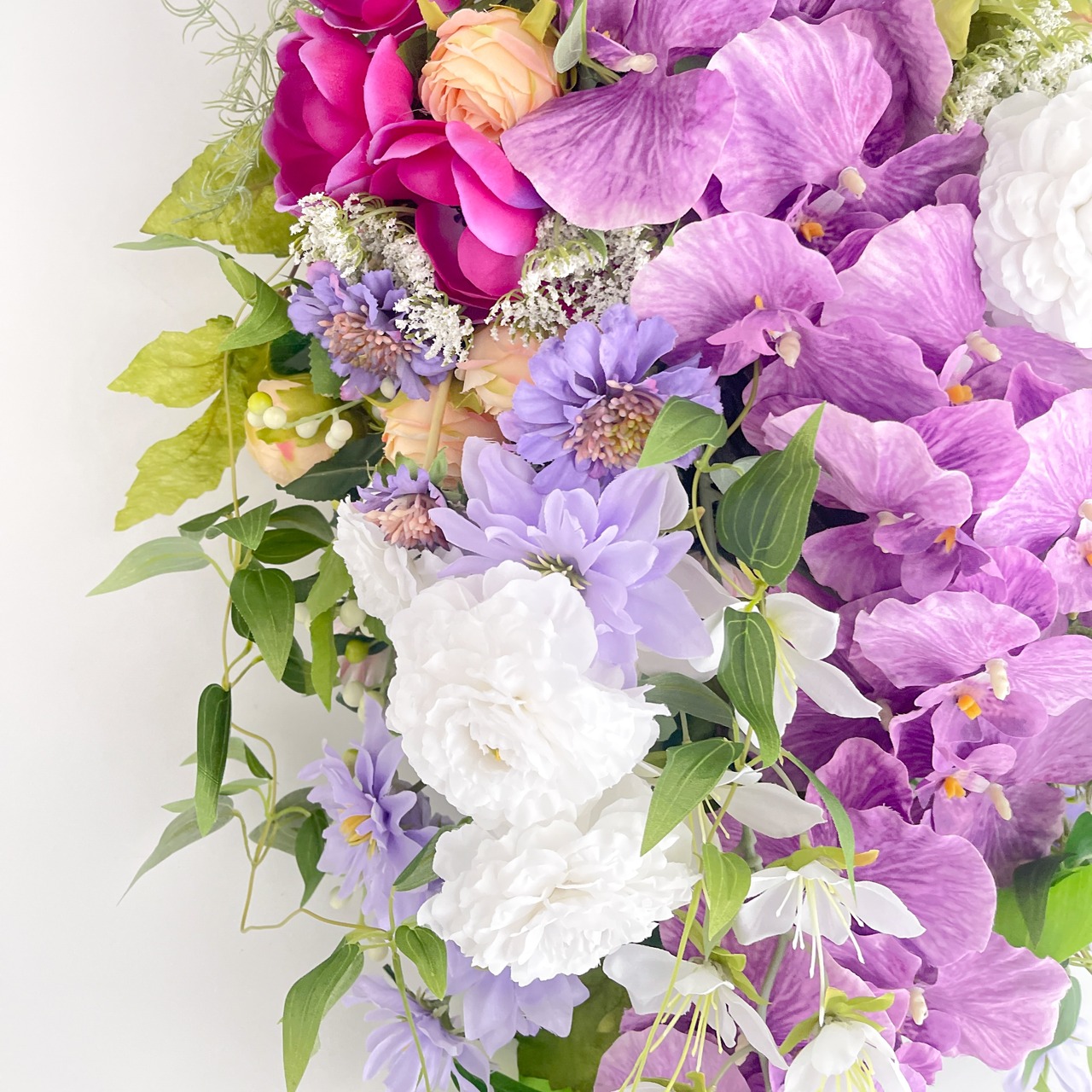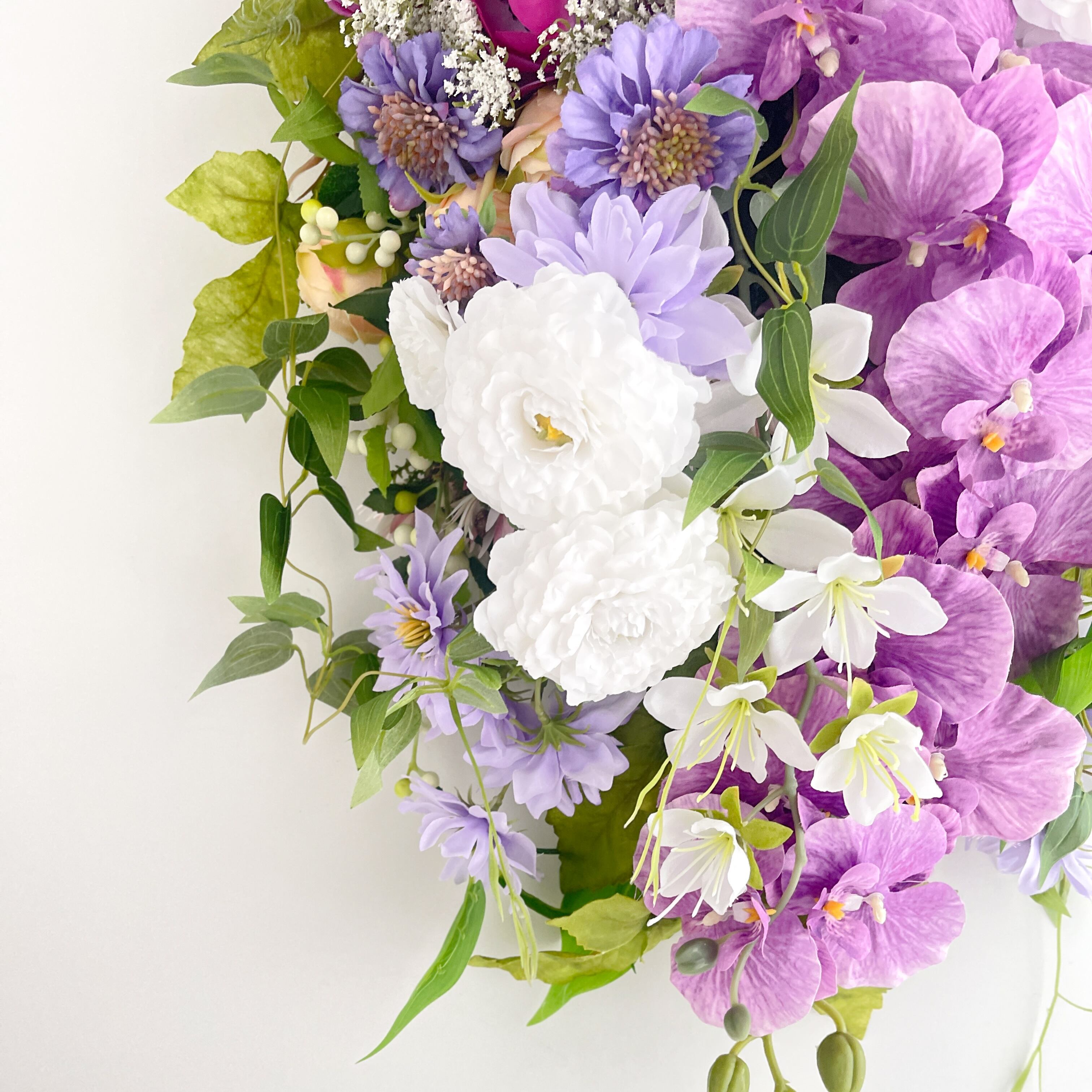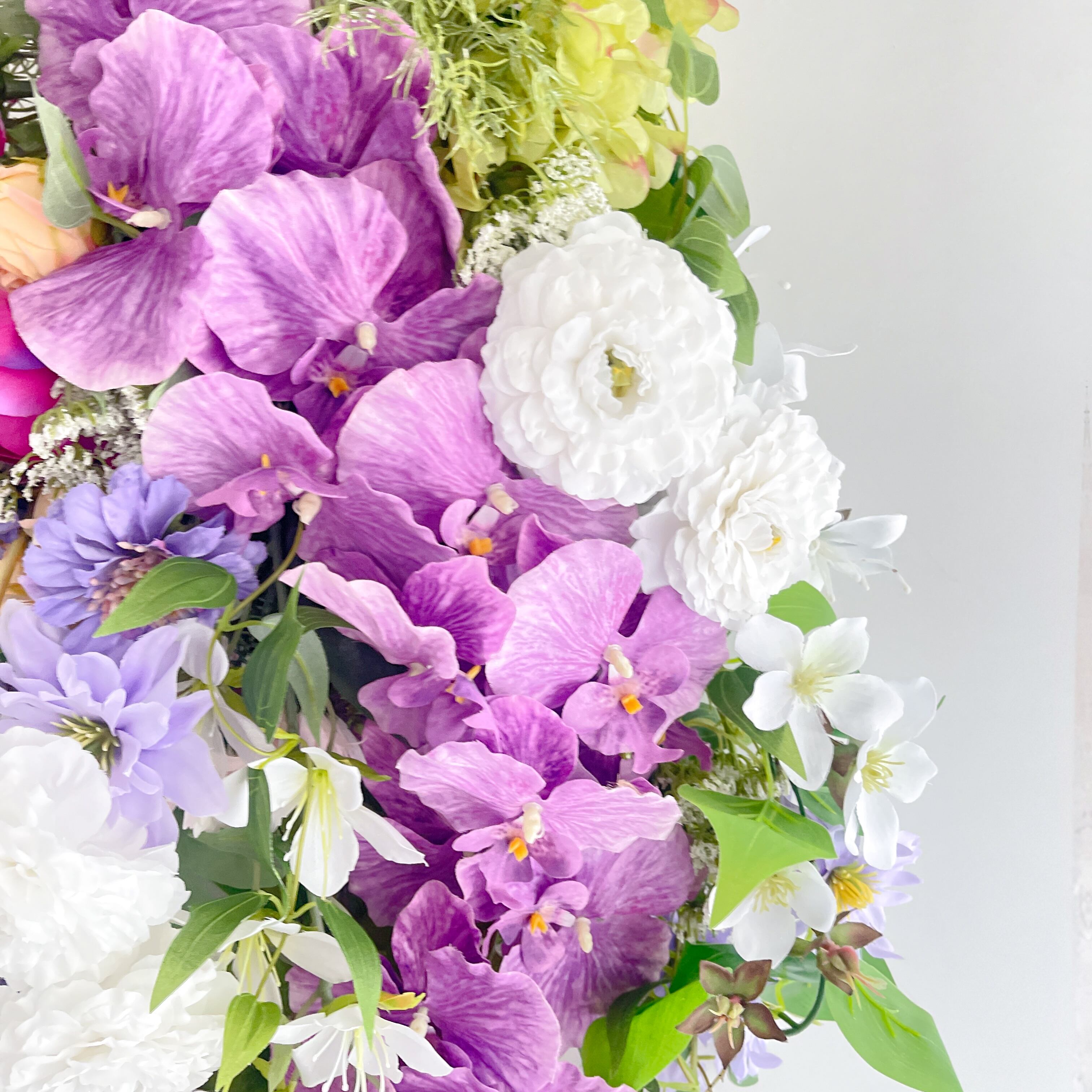 胡蝶蘭の華やかなフラワースワッグ 光触媒フラワー 開店祝いや誕生日や記念日に アーティフィシャルフラワー