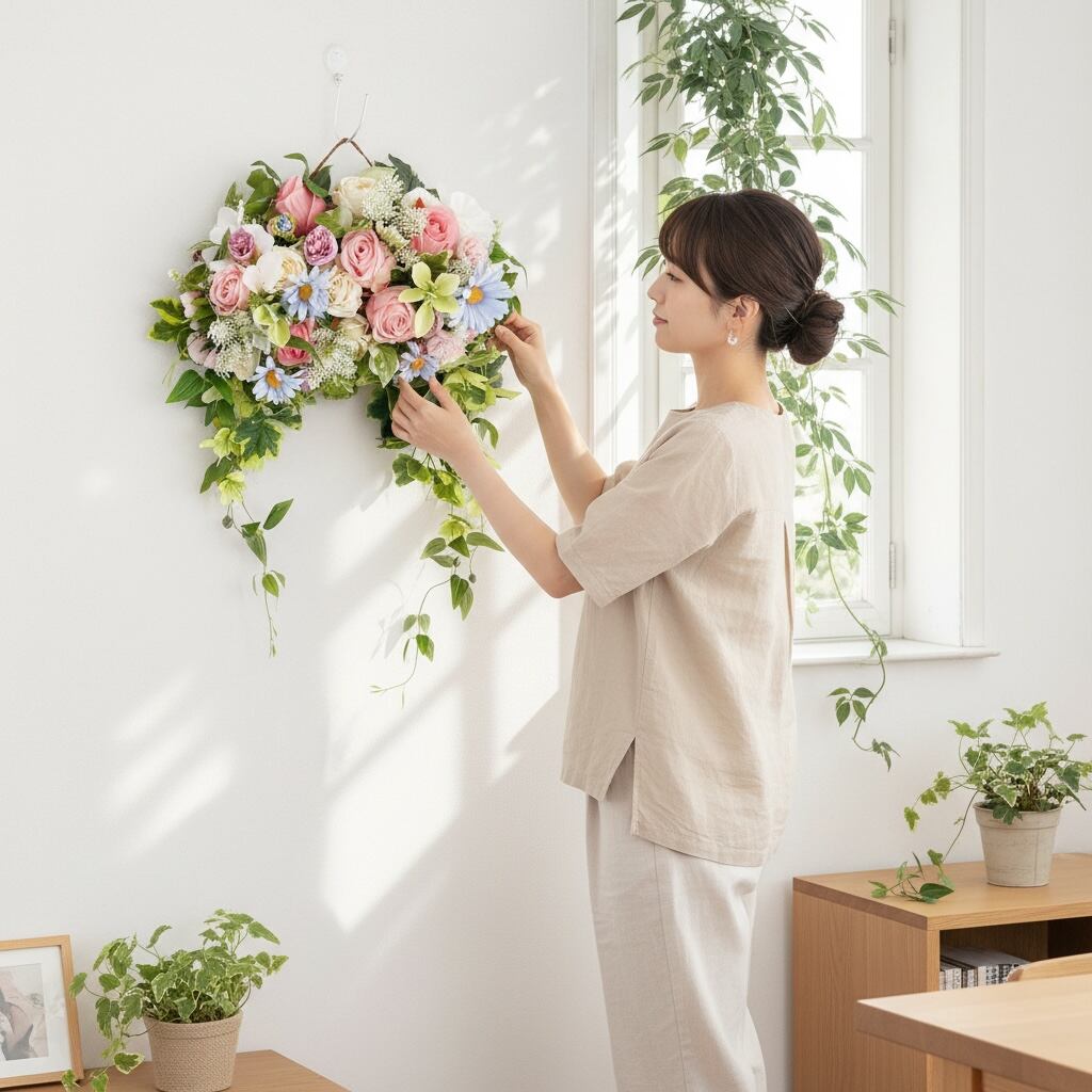 光触媒フラワー 春の光を纏うフラワーリース お部屋を格上げする大人の壁飾り アーティフィシャルフラワー