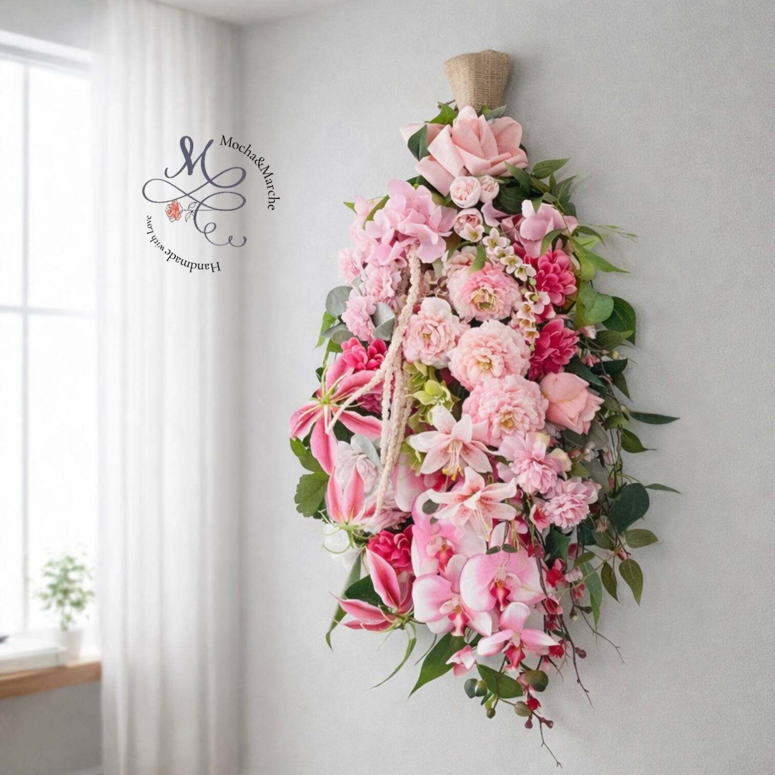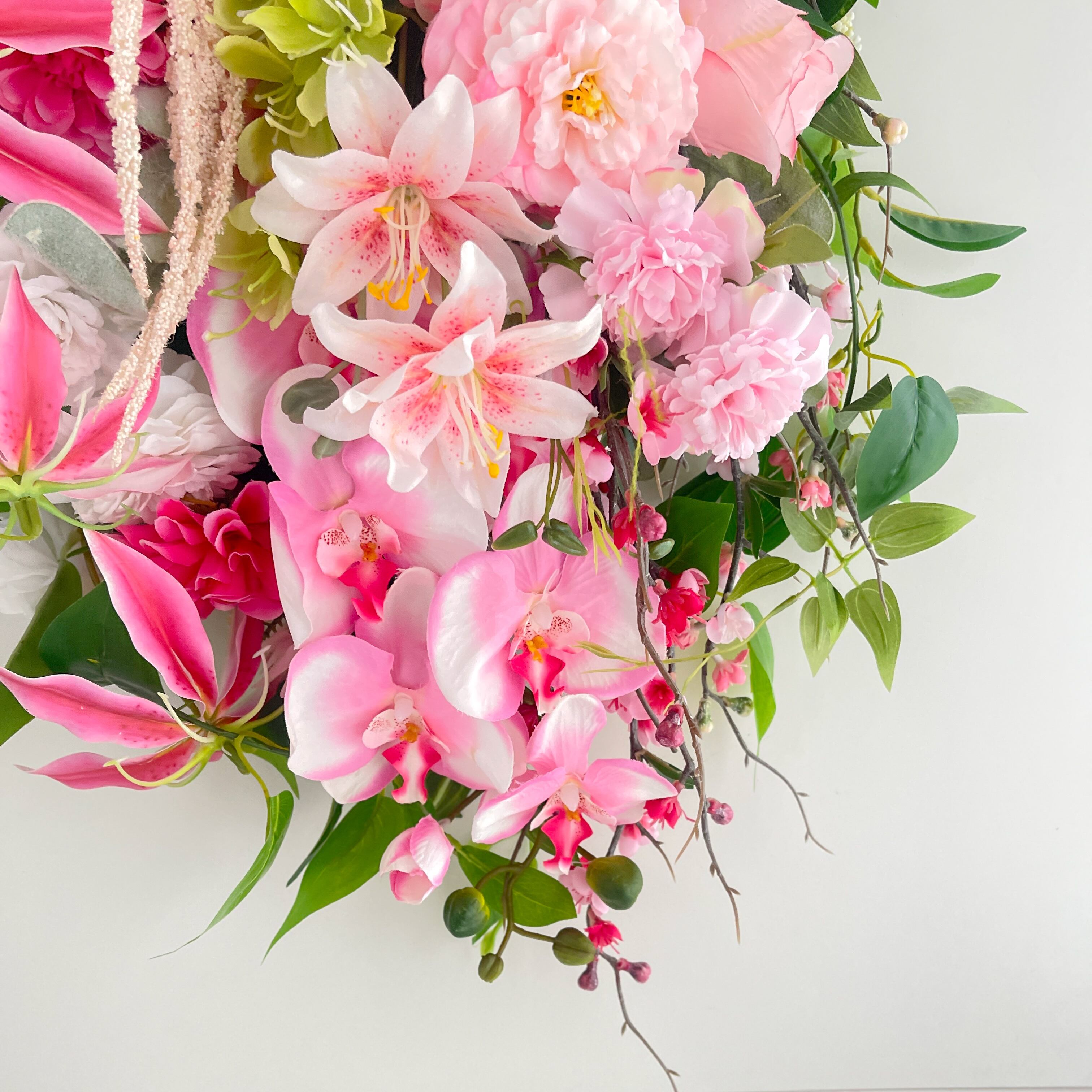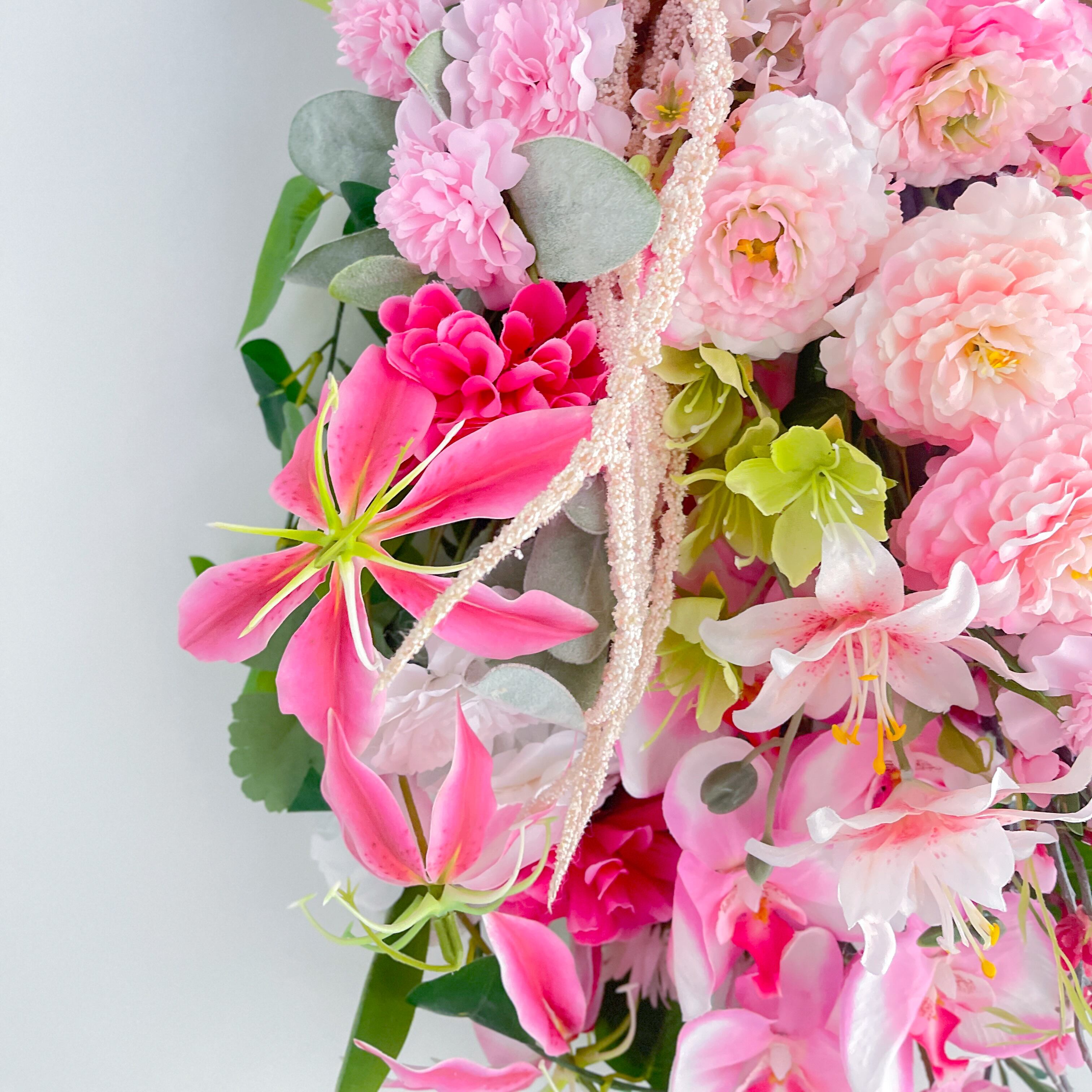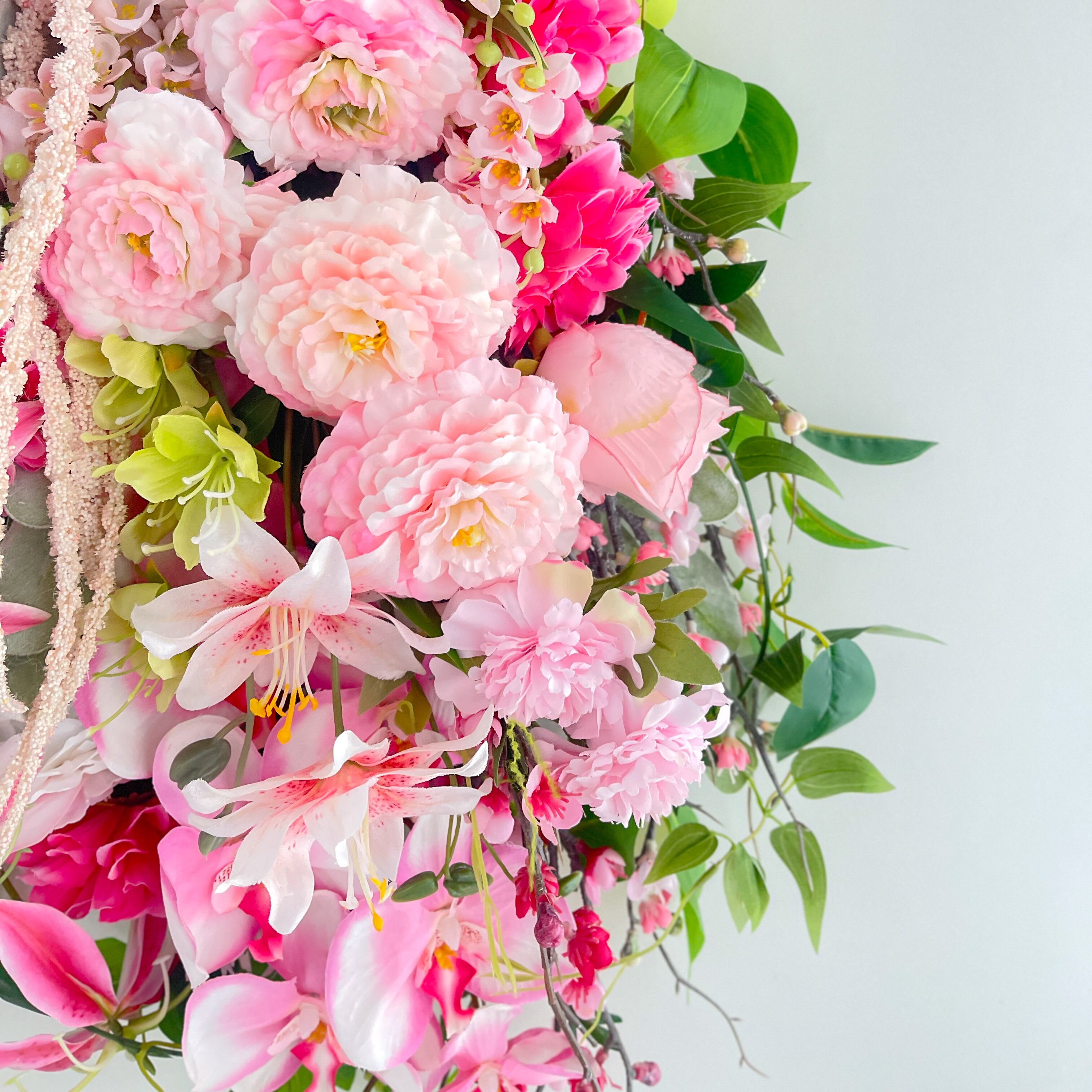 ひな祭りを祝う 胡蝶蘭と桃の特大スワッグ|春を告げる華やぎ|初節句 春リース
